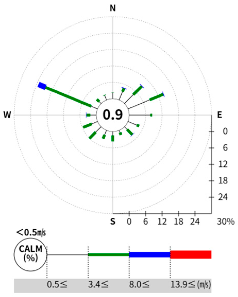 https://bridge.kfpa.or.kr, accessed on 10 October 2025) of the Korea Fire Insurance Association (KFPA), which provides risk assessment data to the Korean insurance industry. The BRIDGE platform provides visualizations of annual data on wind direction from the Korea Meteorological Administration in the relevant region.