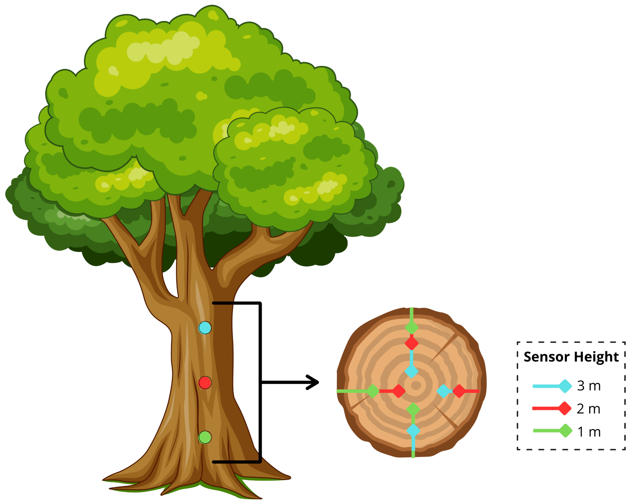 Figure 2. The multiple data depths were designed to estimate how fast and near the surface temperature deviations are forced to penetrate into the trunk, and whether this pattern responds to changes in wind intensity or direction.