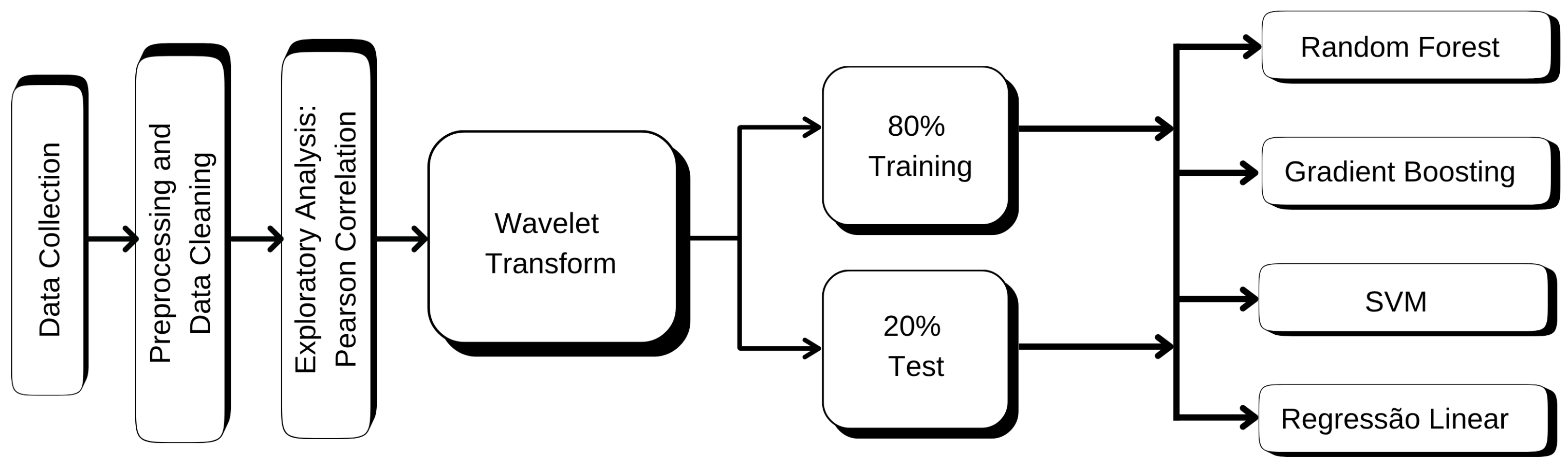 Following this transformation, the coefficients of downscaling and wind speed data as well as direction were subjected to correlation analysis. This aided the identification of which aspects of the temperature signal were most related to meteorological events. The coefficients that presented stronger correlation with wind behavior were used as predictive variables in the models proposed in this paper. Thus, the DWT contributed to transforming raw data into features that could be exploited by machine learning algorithms.