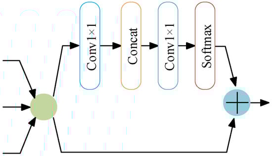 The adaptive feature fusion framework adopted by the BE-AFFM is shown in Figure 4. After dilated convolution, the feature maps are divided along the channel dimension. One branch undergoes convolution, concatenation, and normalization, and is then added back to the other branch to generate the module output. The dilated convolution operation triples the number of channels, allowing the model to capture a broader contextual range. Through adaptive feature fusion, redundant information is suppressed while salient features are emphasized, effectively reducing the number of channels and easing the computational load for subsequent layers.