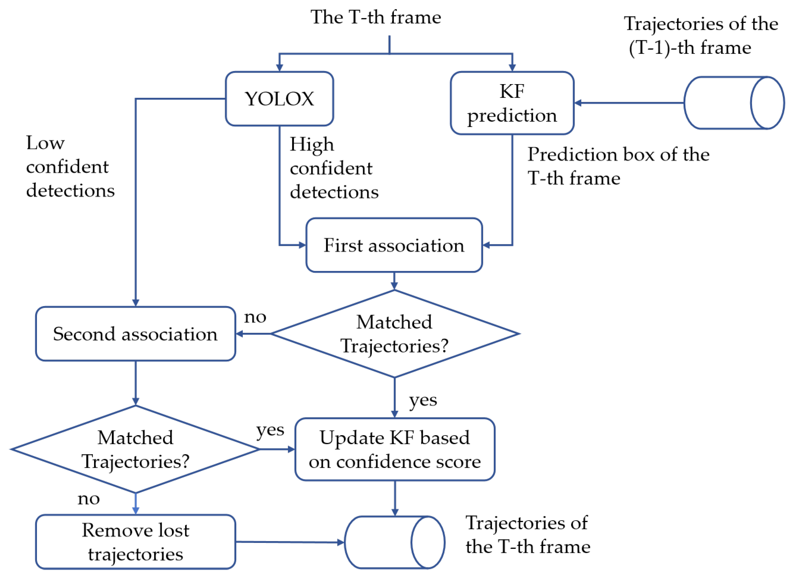 - In the data association stage, confidence scores are integrated into the cost matrix to improve matching accuracy and achieve more reliable assignment results.