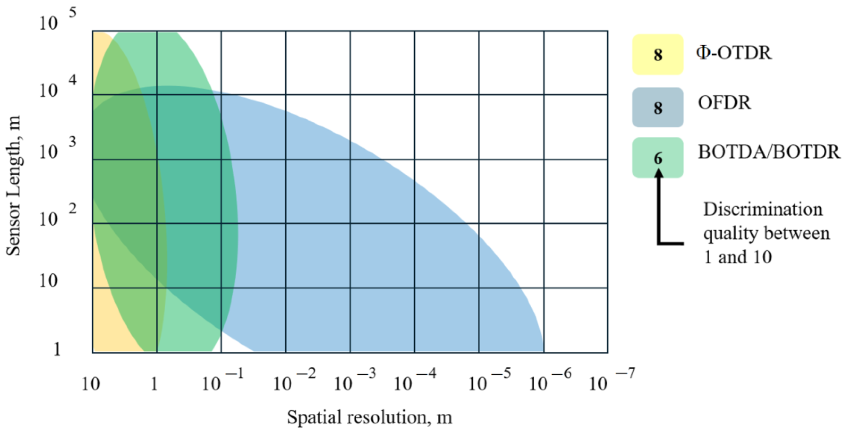 | Reference | Discrimination Type | Effects | Accuracy | Range | Spatial Resolution, m | Fiber Length, km |