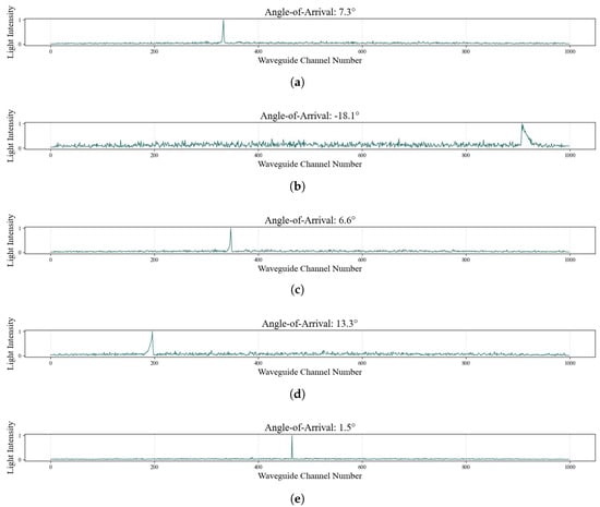 - Sinigaglio, H.; Murakowski, J.; Creazzo, T.; Prather, D. Angle-of-Arrival Detection Using Photonic Integrated Circuit and Array-Beam Space Mapping. In Proceedings of the 2024 IEEE International Symposium on Phased Array Systems and Technology (ARRAY), Boston, MA, USA, 15–18 October 2024; pp. 1–7. [Google Scholar] [CrossRef]