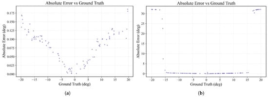 However, the model’s generalization capability remains fundamentally constrained by physical principles. The detectable angular range is ultimately limited by the diffraction limit . Experimental verification at 1064 nm confirmed accurate predictions within the theoretical range of approximately ±15°, with failure beyond this boundary (Figure 12b). This confirms that the model’s operational limits are physically determined rather than being solely defined by the training data range.