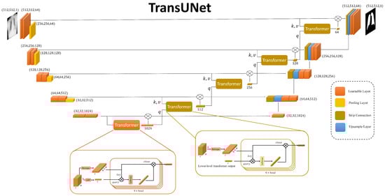 - Chen, J.; Lu, Y.; Yu, Q.; Luo, X.; Adeli, E.; Wang, Y.; Lu, L.; Yuille, A.L.; Zhou, Y. Transunet: Transformers make strong encoders for medical image segmentation. arXiv 2021, arXiv:2102.04306. [Google Scholar] [CrossRef]