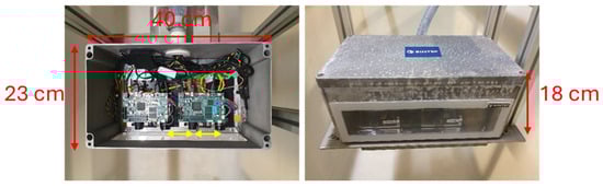 We have built the camera shown in Figure 5. It consists of two cameras, with a projector in the middle, each separated by a distance of 75 mm. The projector is a Texas Instruments LightCrafter4500 (Texas Instruments, Dallas, TX, USA), while the cameras are Basler ace U acA1440-220uc (Basler AG, Ahrensburg, Germany). The housing is watertight, allowing images to be captured underwater. A single-camera version of the setup was described and characterized in a previous publication [20], and was found to reconstruct 3D with a precision of 0.2 mm at 1 m distance, at turbidities up to NTU 4. As will be discussed in Section 3.2 and Section 4, the dual camera setup will, by design, retain this precision. Further details can be found in [20].