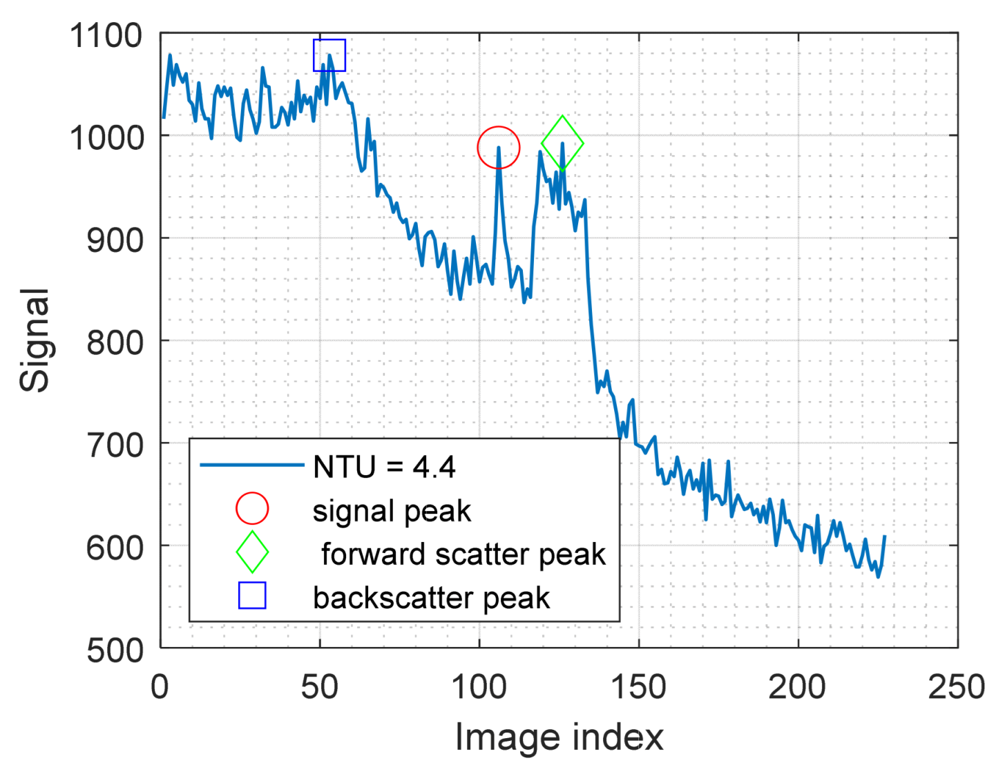 - Forward-scatter-dominated signal.