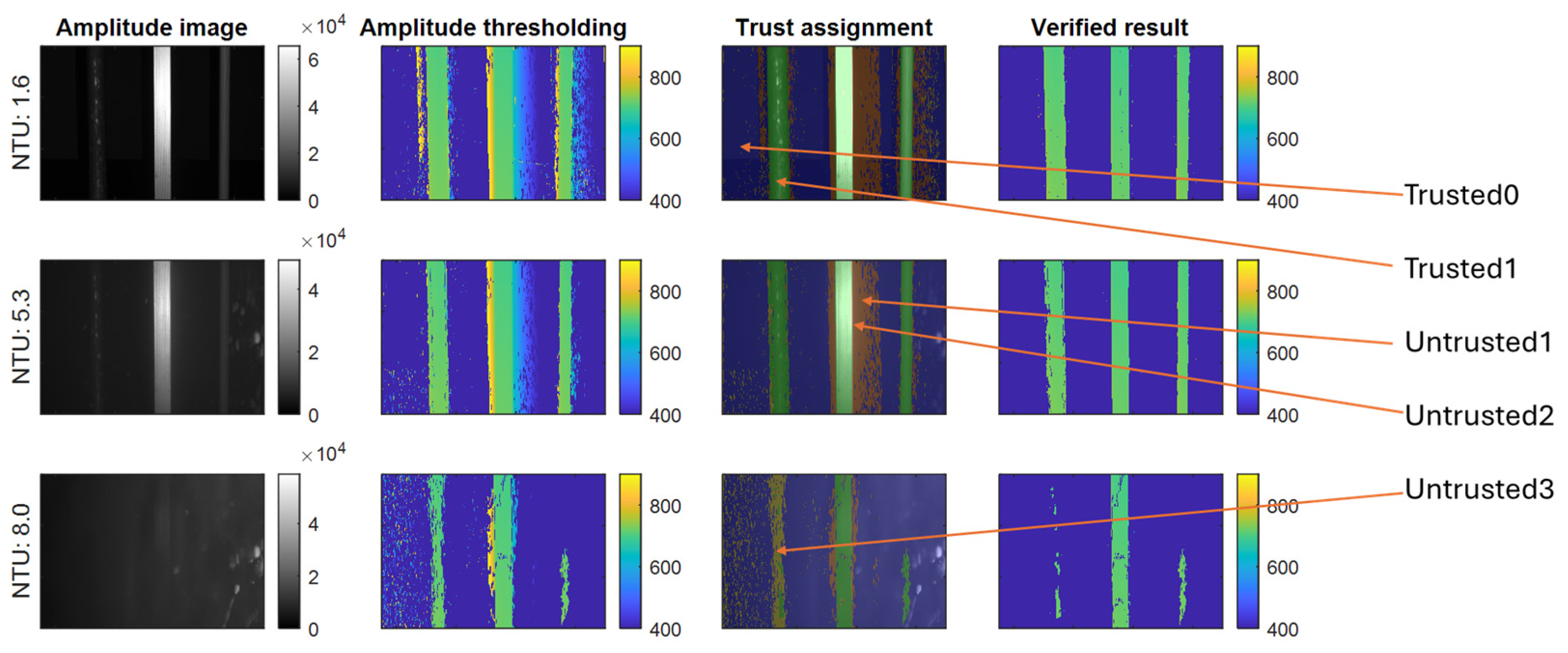 - Untrusted2 represents that both points reported have a nearby corresponding point. Typically, this occurs when the scattering is too close to the real object point to be well separated. In this case, no reliable selection can be made.