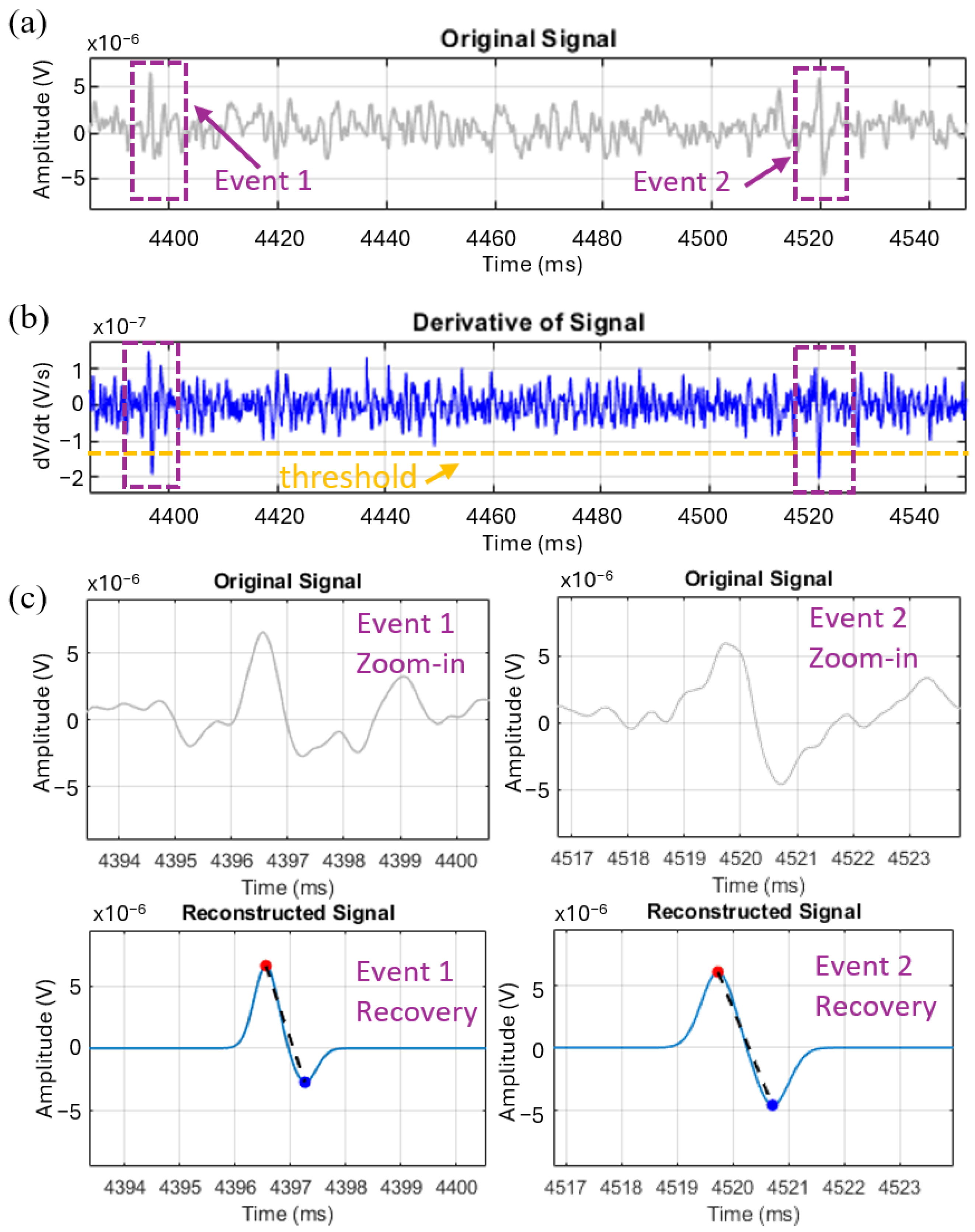 3.1. Derivative-Based Event Detection and Signal Reconstruction