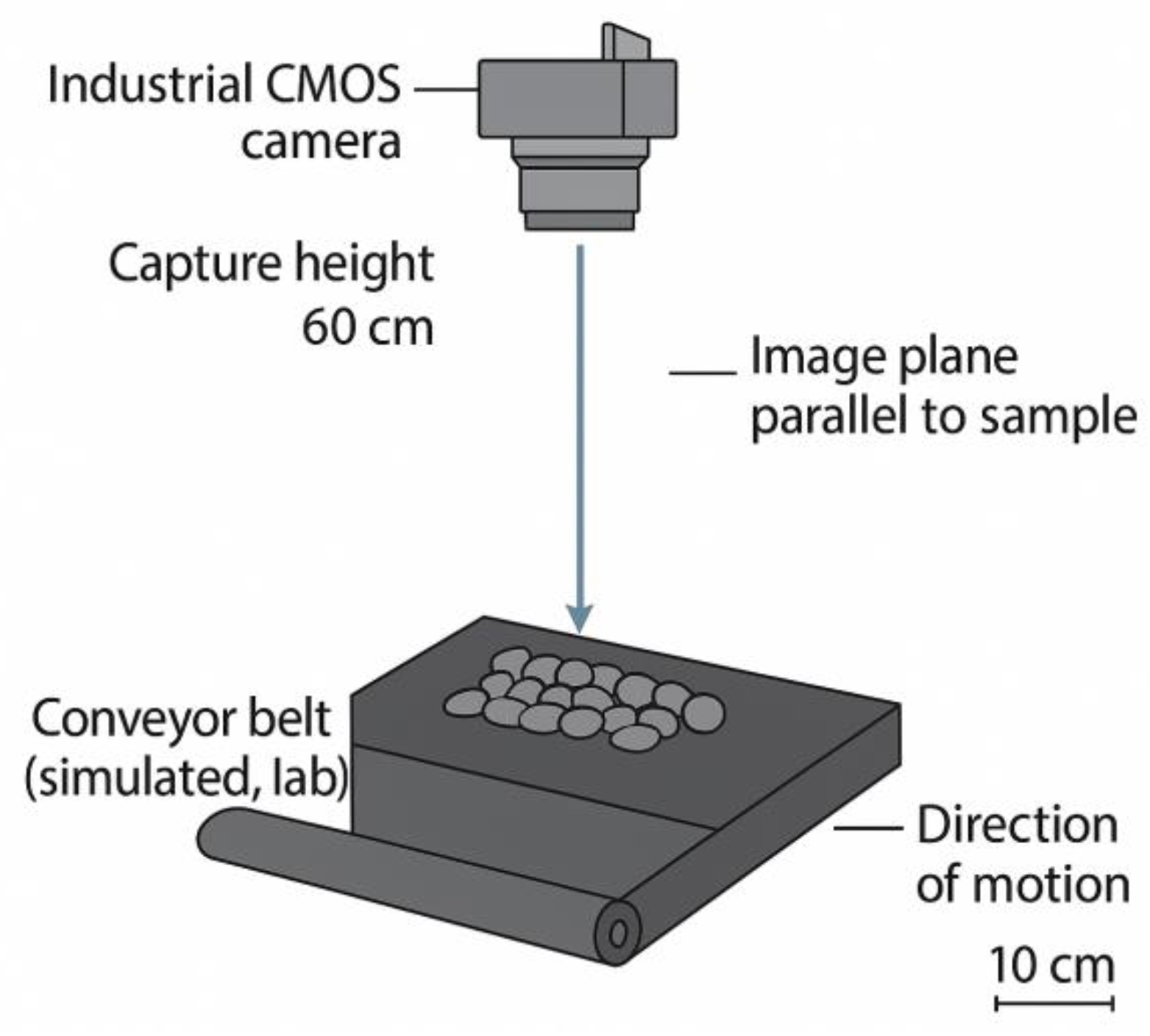 - Christie, G.; Hyndman, A.; Moyle, S. Fast Inspection for Size-Based Analysis in Aggregate Production Using 2D Vision. Mach. Vis. Appl. 2015, 26, 765–775. [Google Scholar] [CrossRef]