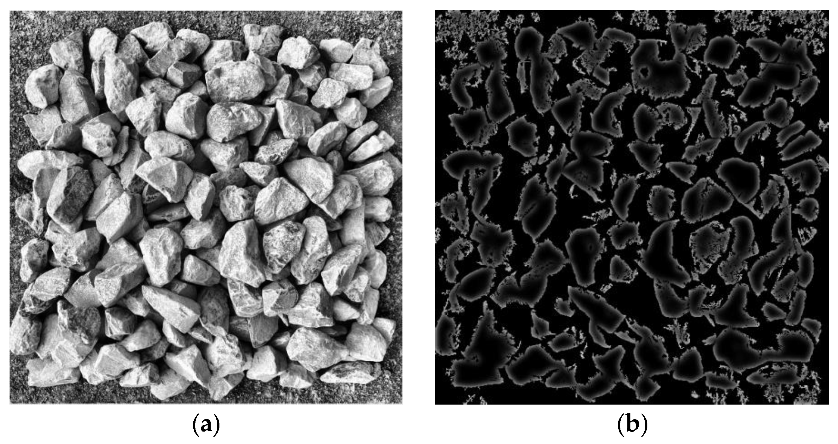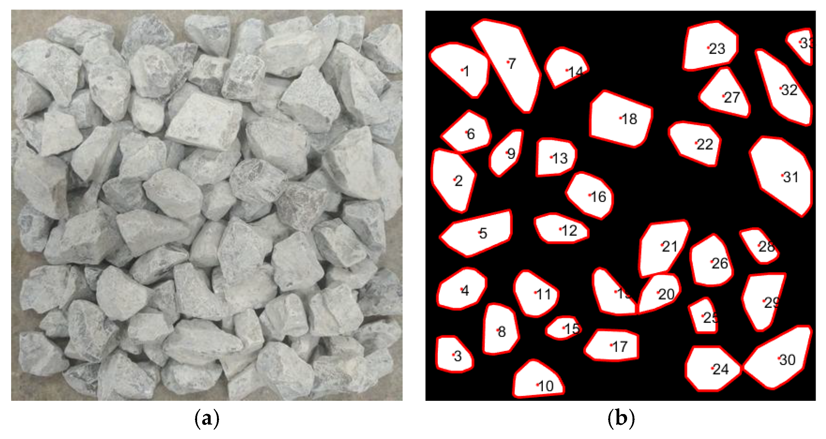 - Murtagh, F.; Basset, J.M.; Lemaire, J. A Machine Vision Approach to the Grading of Crushed Aggregate (On-belt Camera). Mach. Vis. Appl. 2005, 16, 219–228. [Google Scholar] [CrossRef]