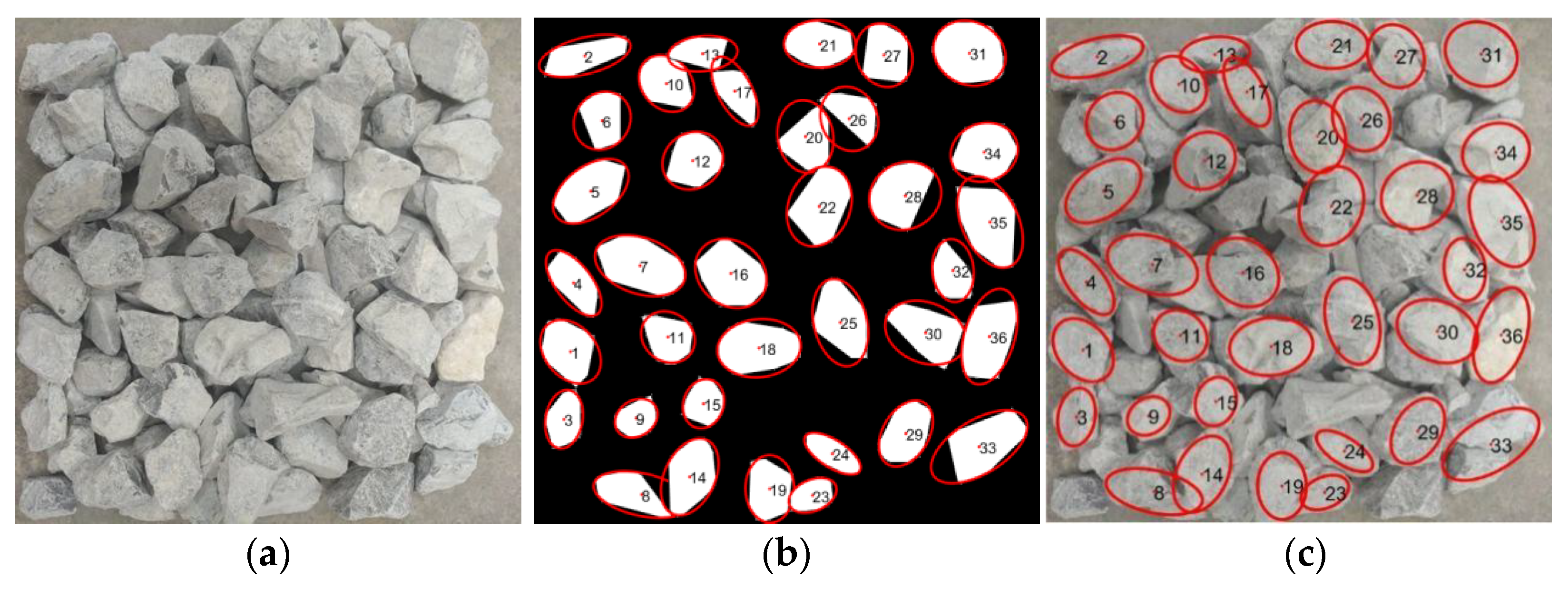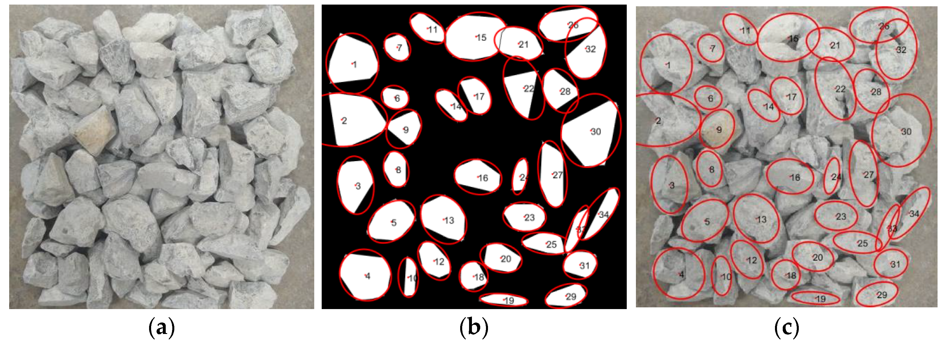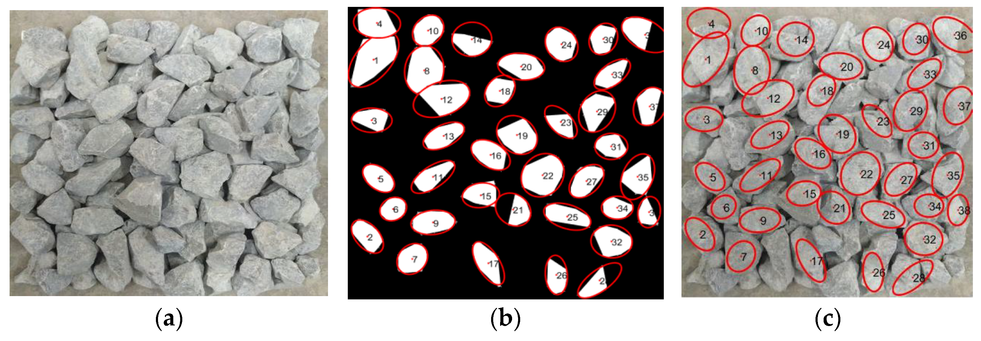 - Xiao, Y.; Peng, Y.; Wang, M.; Ning, Y.; Zhou, Y.; Kong, K.; Long, Y. A Novel Method for Predicting Coarse Aggregate Particle Size Distribution Based on Segment Anything Model and Machine Learning. Constr. Build. Mater. 2024, 429, 136429. [Google Scholar] [CrossRef]