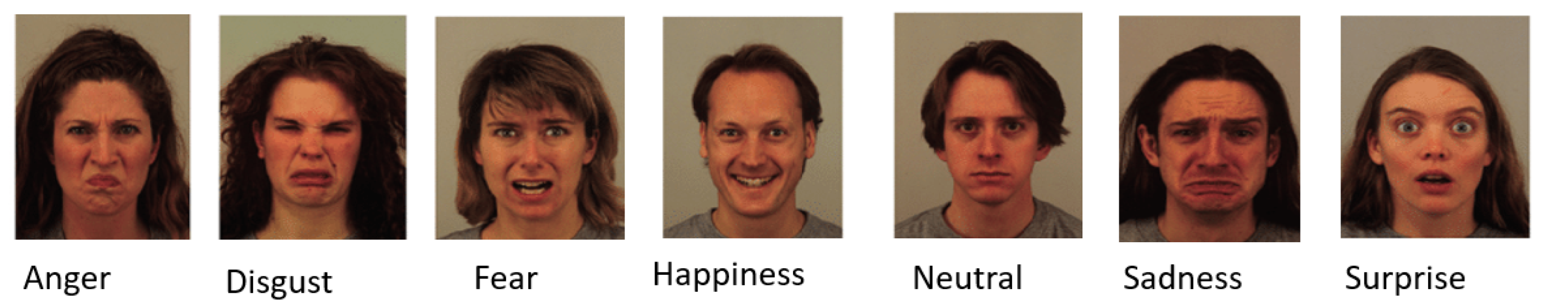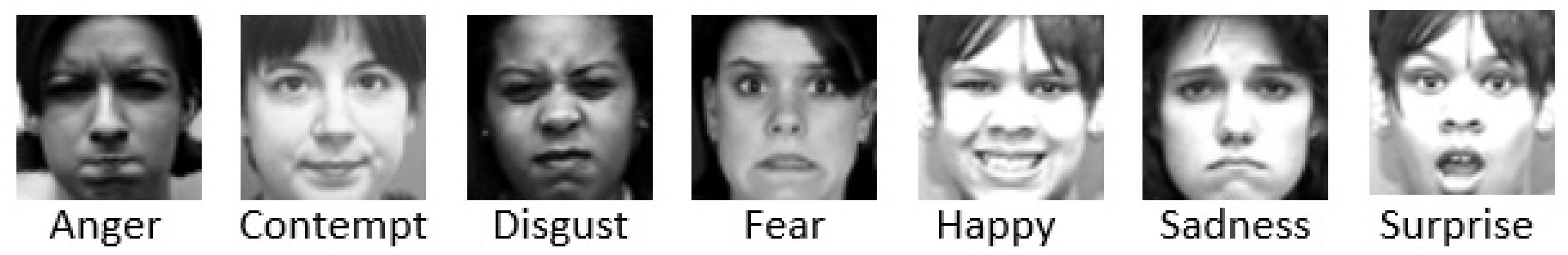 The literature reports several real-time facial emotion recognition (FER) methods developed using image datasets that serve as benchmarks for evaluating algorithms that integrate computer vision and artificial intelligence with camera and sensor systems. These datasets capture facial expressions from individuals in both controlled laboratory conditions and real-world scenarios. Among the most widely used and well-established datasets are the Extended Cohn–Kanade Dataset (CK+) [