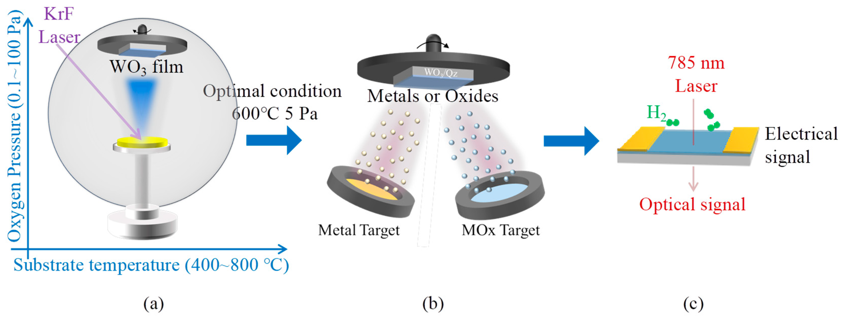 - Nishijima, Y.; Enomonoto, K.; Okazaki, S.; Arakawa, T.; Balčytis, A.; Juodkazis, S. Pulsed laser deposition of Pt-WO3 of hydrogen sensors under atmospheric conditions. Appl. Surf. Sci. 2020, 534, 147568. [Google Scholar] [CrossRef]