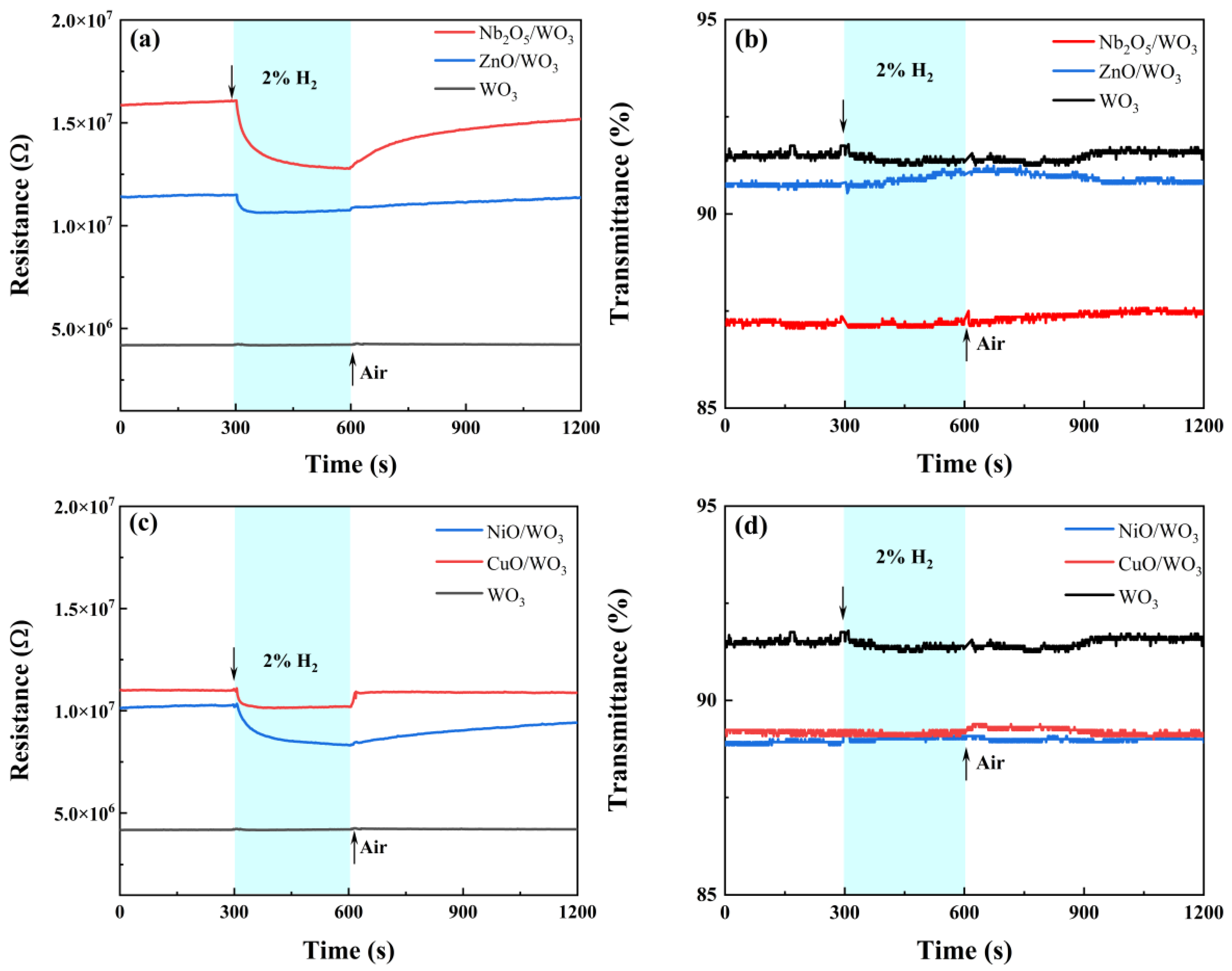 2.4. Evaluation of Hydrogen Sensing Characteristics