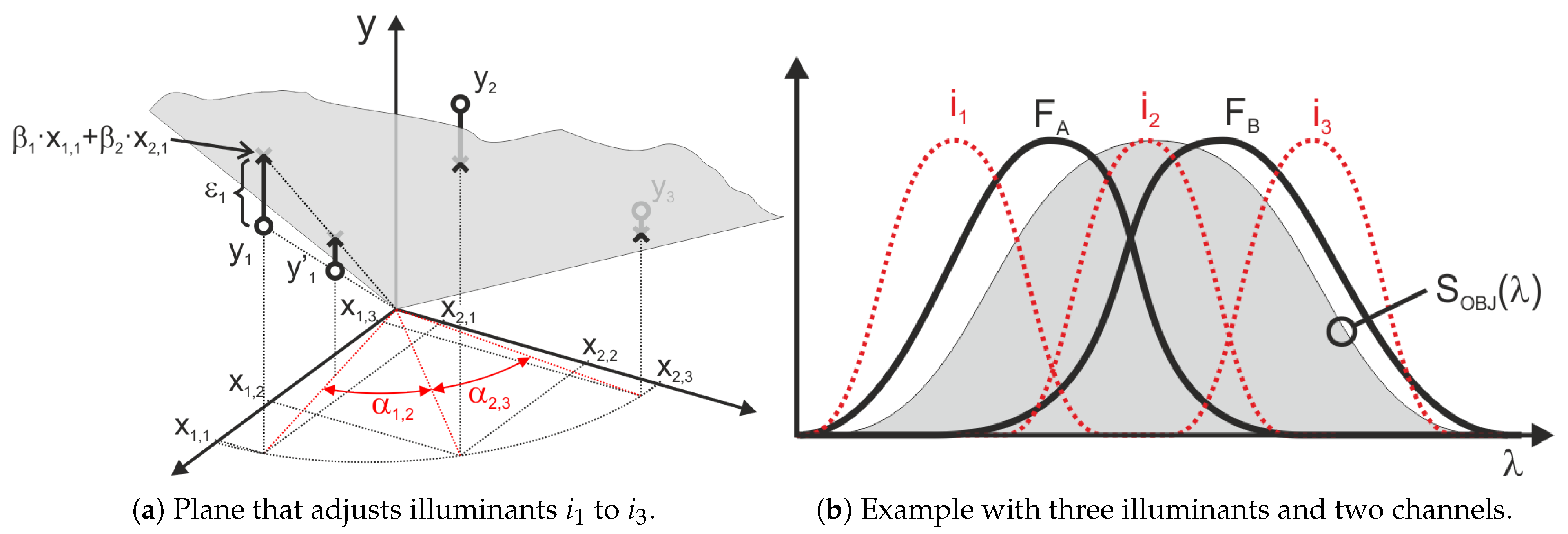 25]. However, these methods are considerably more complex than MLR. For this reason, an alternative approach is proposed below, which leverages two specific characteristics of LRS-PACF sensor fitting using predominantly monochromatic illuminants to obtain target curves such as