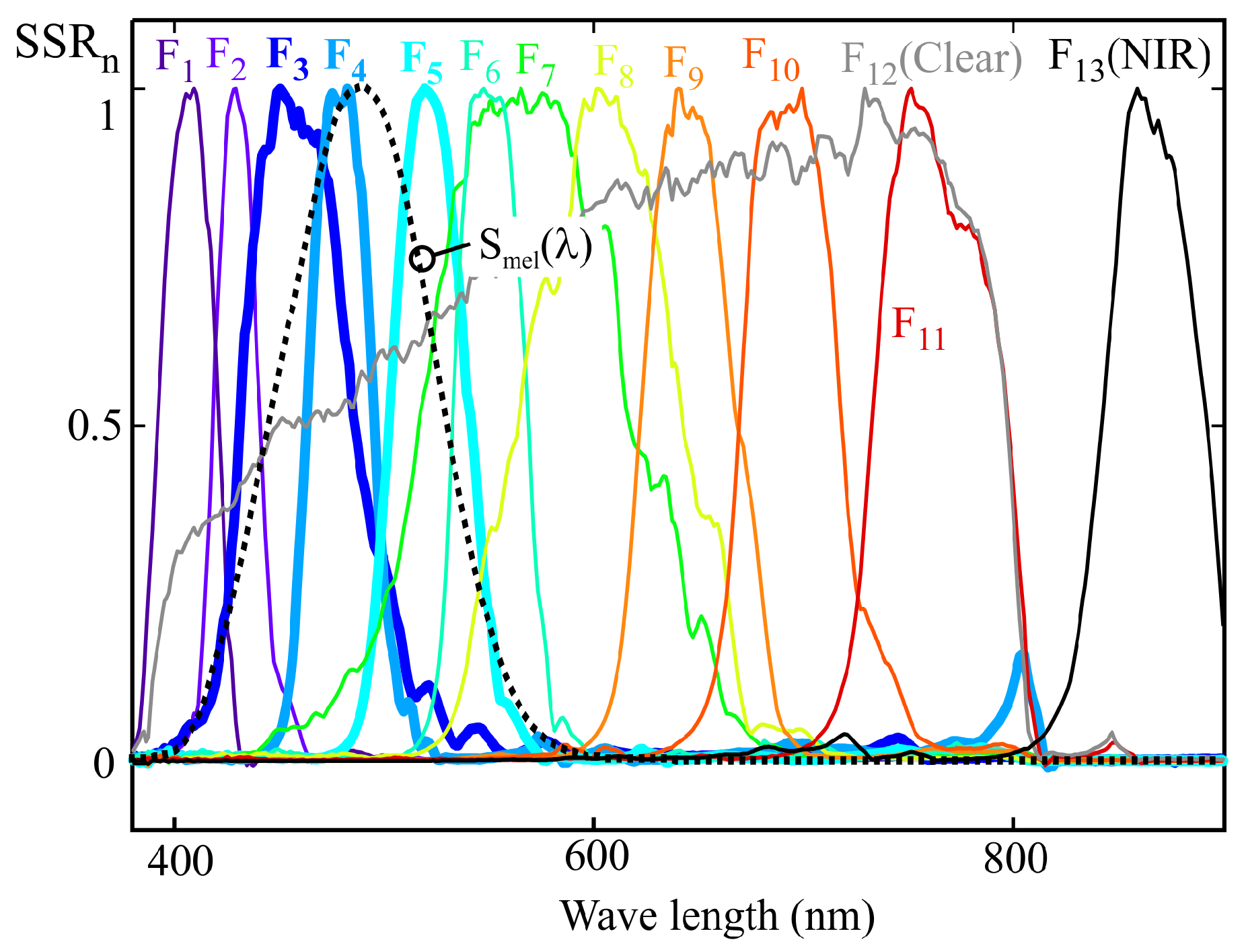 13], the application of a 10-channel LRS-PACF sensor for illuminance measurement is analyzed. The same sensor was used in [