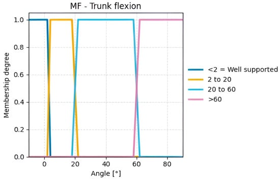 Musculoskeletal risks related to posture and movement in the workplace are commonly assessed using standardized observational tools such as the Rapid Upper Limb Assessment (RULA) [], one of the most widely applied methods for evaluating seated postures. Prior research indicates that fuzzy inference models, when combined with RULA scores, demonstrate high reliability compared with the traditional scoring method, as evidenced by correlation and Bland–Altman analyses []. Fuzzy inference systems support the modeling of complex states using interpretable, linguistically based rules, making them well suited for managing imprecise or uncertain information []. This capacity to handle subjectivity renders them a valuable complement to observational assessment techniques in movement and ergonomic analysis [].