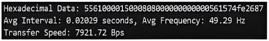 - Asynchronous Notification Handler: This asynchronous function manages sensor notifications concurrently, handling multiple variables from multiple sensors simultaneously. Its input arguments are “sender,” containing the sensor’s MAC address; “data,” containing the unpacked hexadecimal sensor data; “sensor_name,” the name of the sensor; and “port_name,” the number of the port associated with the sensor. Once the data are acquired, the function separates the bytes according to the variables they correspond to, performs the necessary conversions, and obtains the hexadecimal values of the three main variables (acceleration, angular velocity, and angular position). The results are presented in a tabular format on the terminal, concurrently transmitted through the serial port, and also archived in a text file.