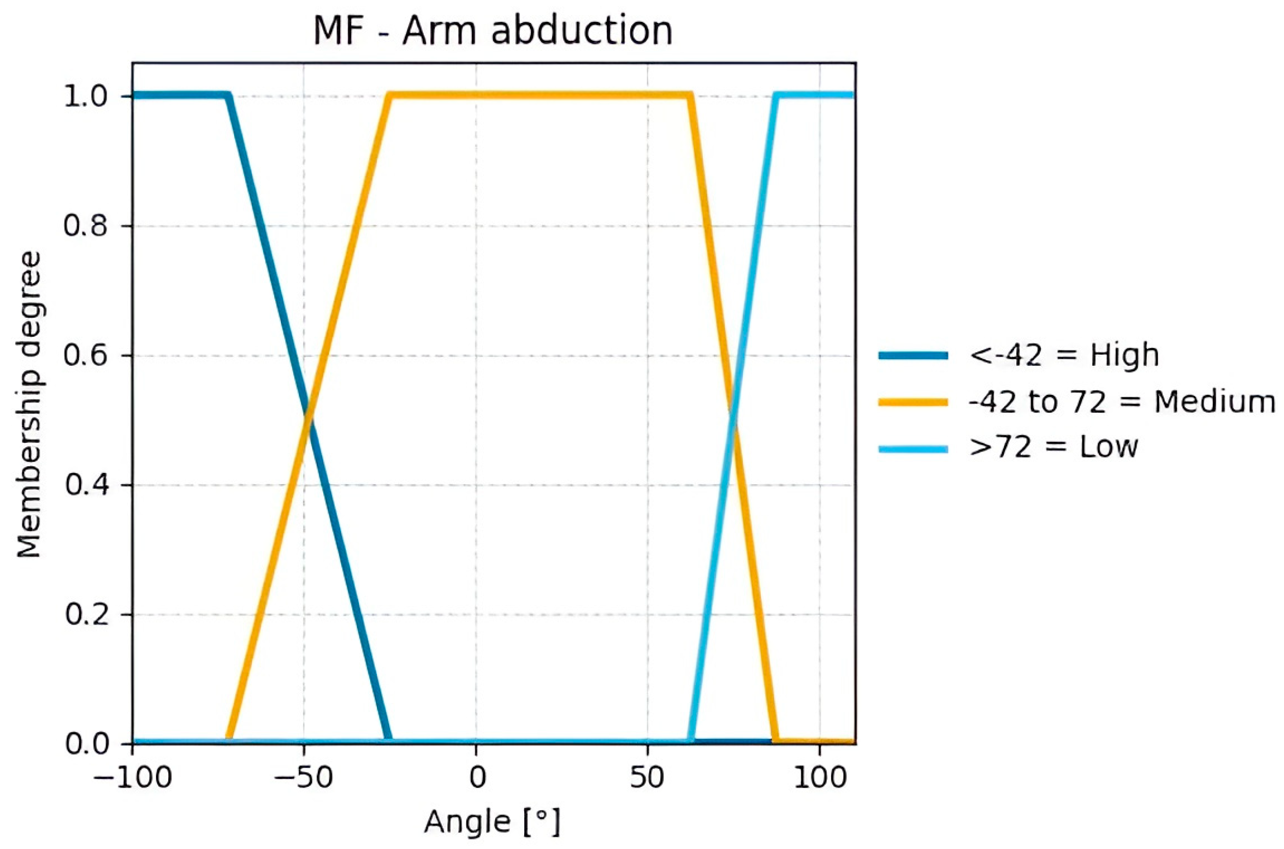 - A validated case study demonstrating clinical applicability, where real IMU data were used to develop a fuzzy inference system grounded in the Rapid Upper Limb Assessment (RULA). The resulting model offers interpretable, explainable outputs suitable for physiotherapists and ergonomic risk analysts, enhancing trust and facilitating future adoption.