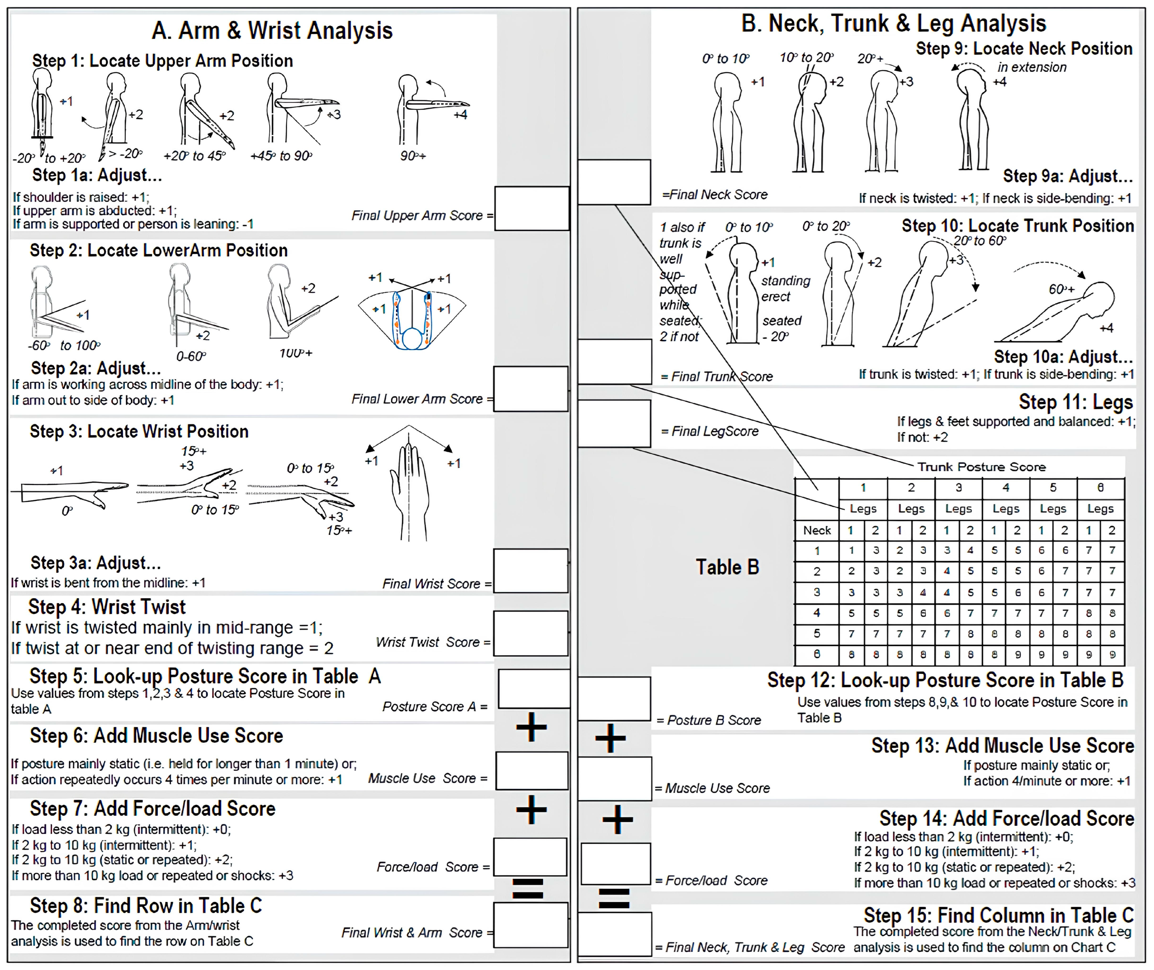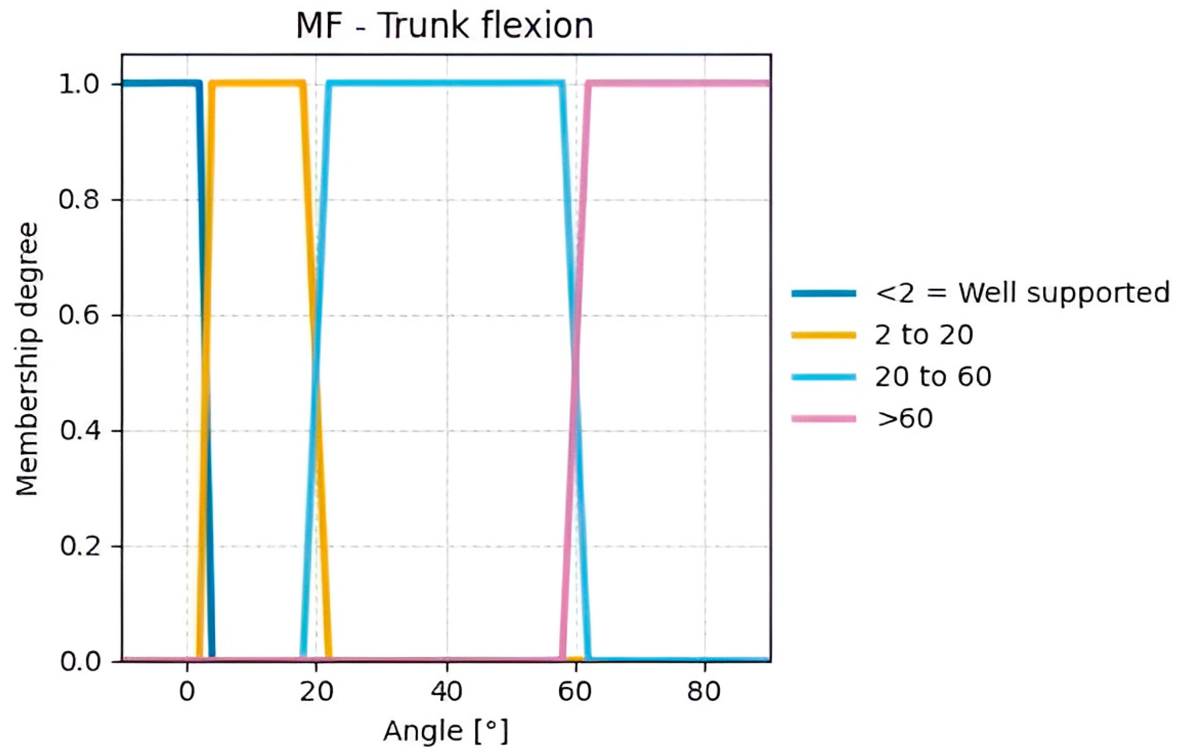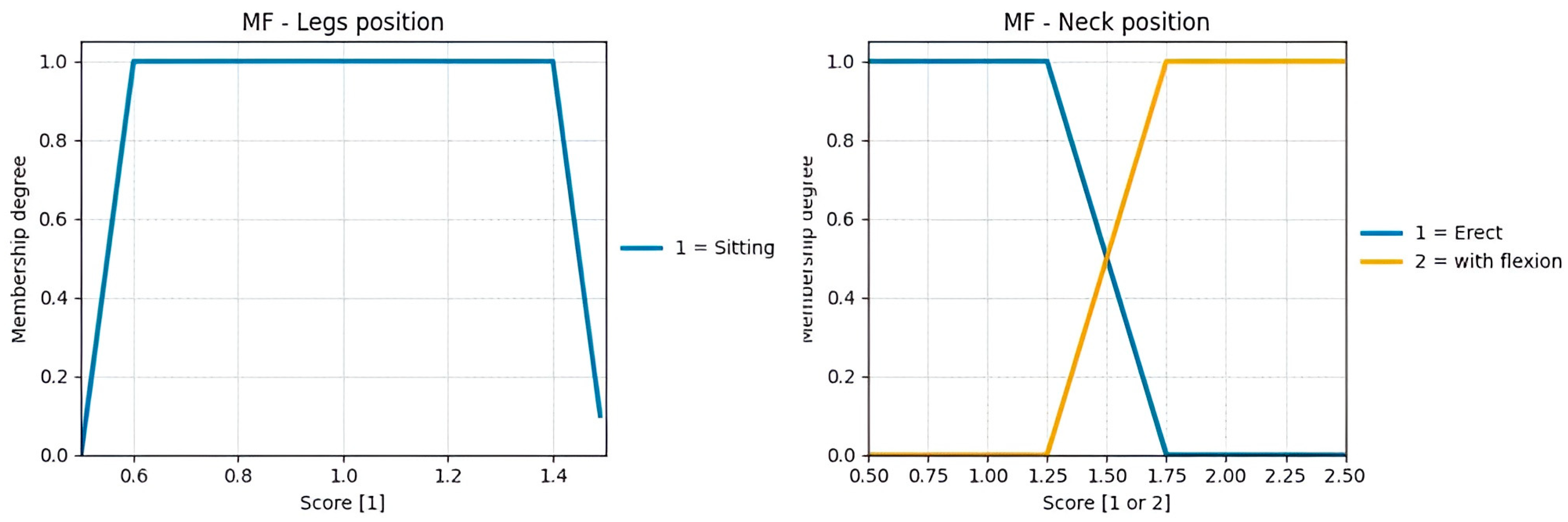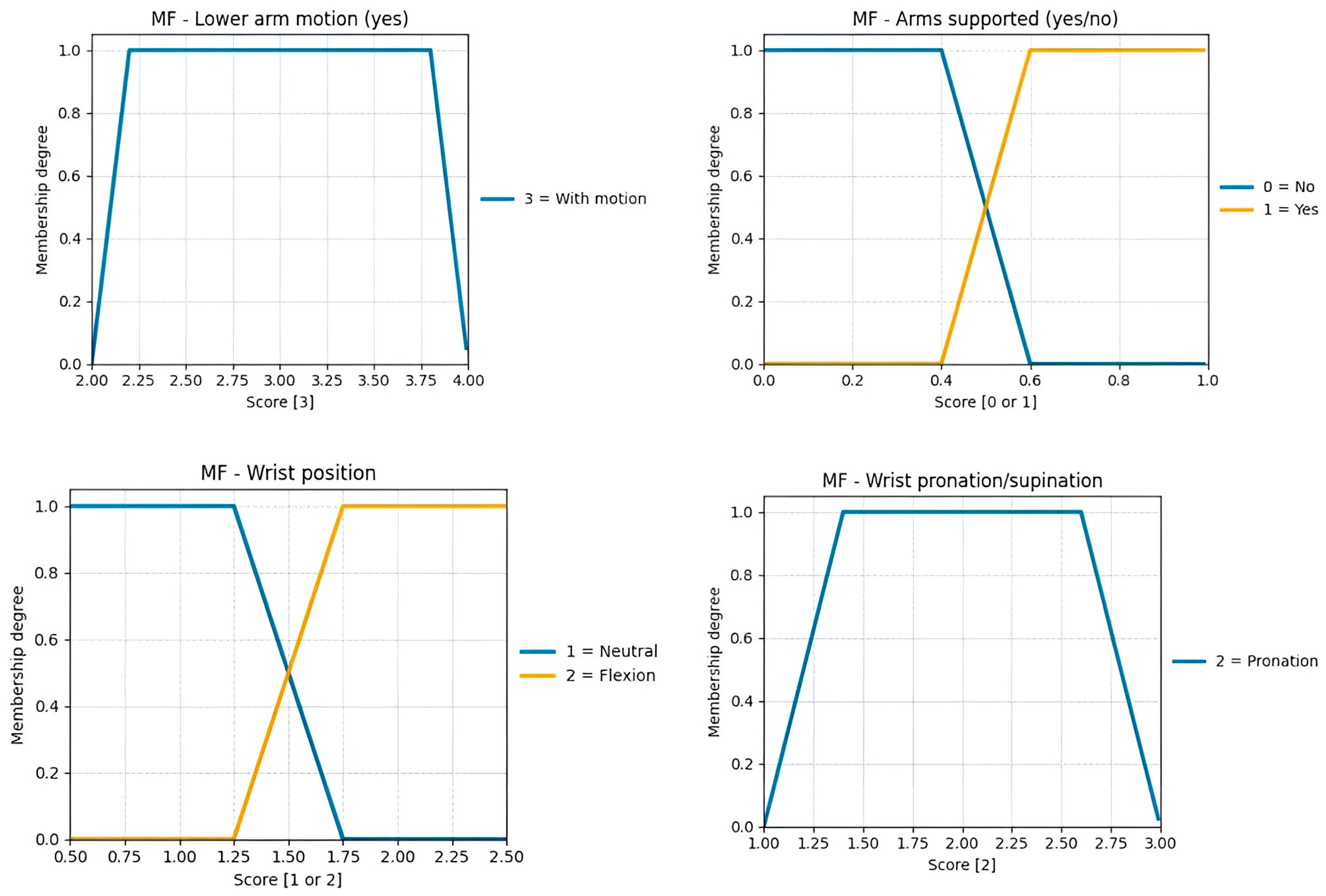 - Fuzzy inference models using the RULA method, converting biomechanical data into a risk of injury score.