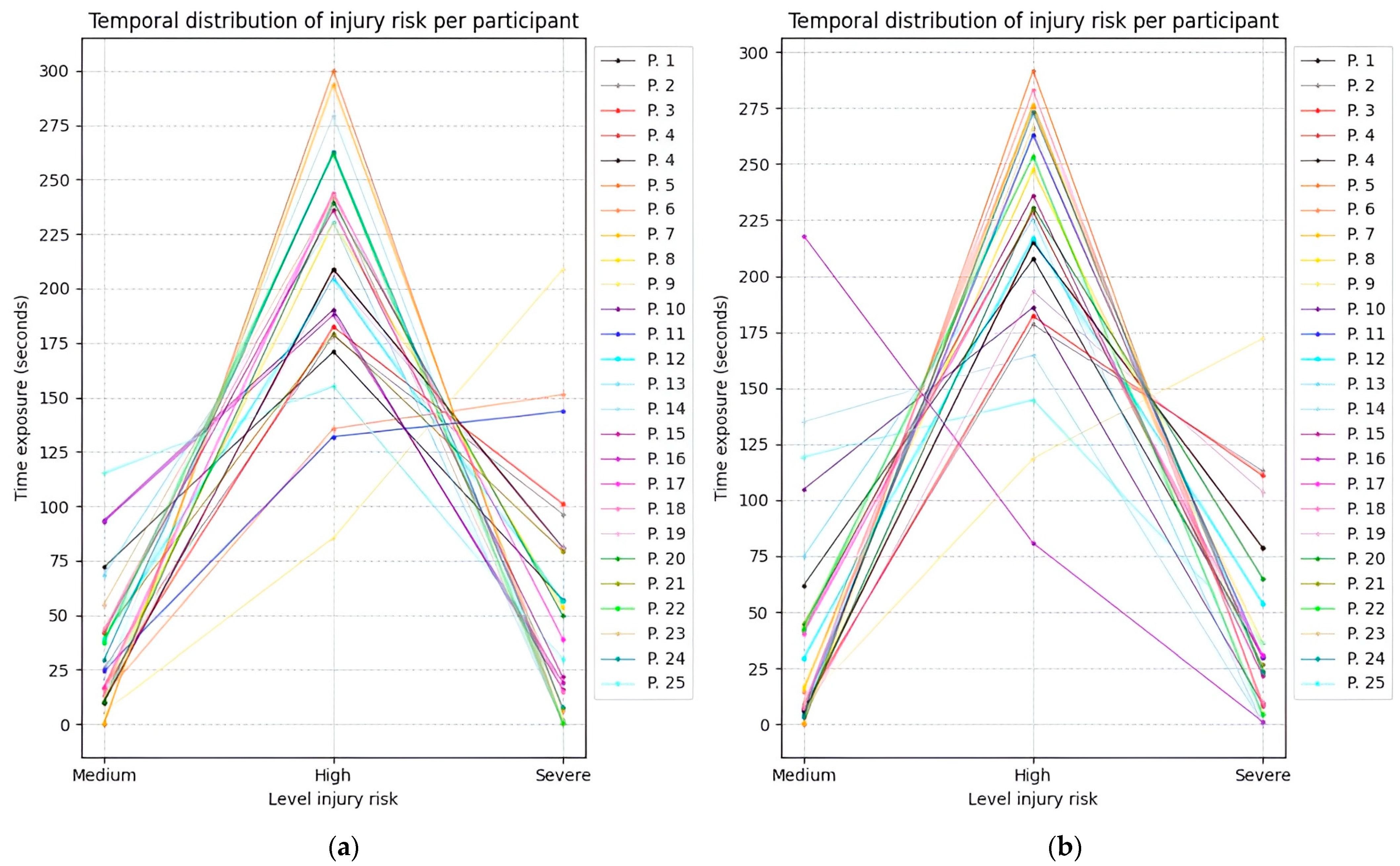3.2.2. Injury Risk Assessment Results for the 25 Participants by the FIS