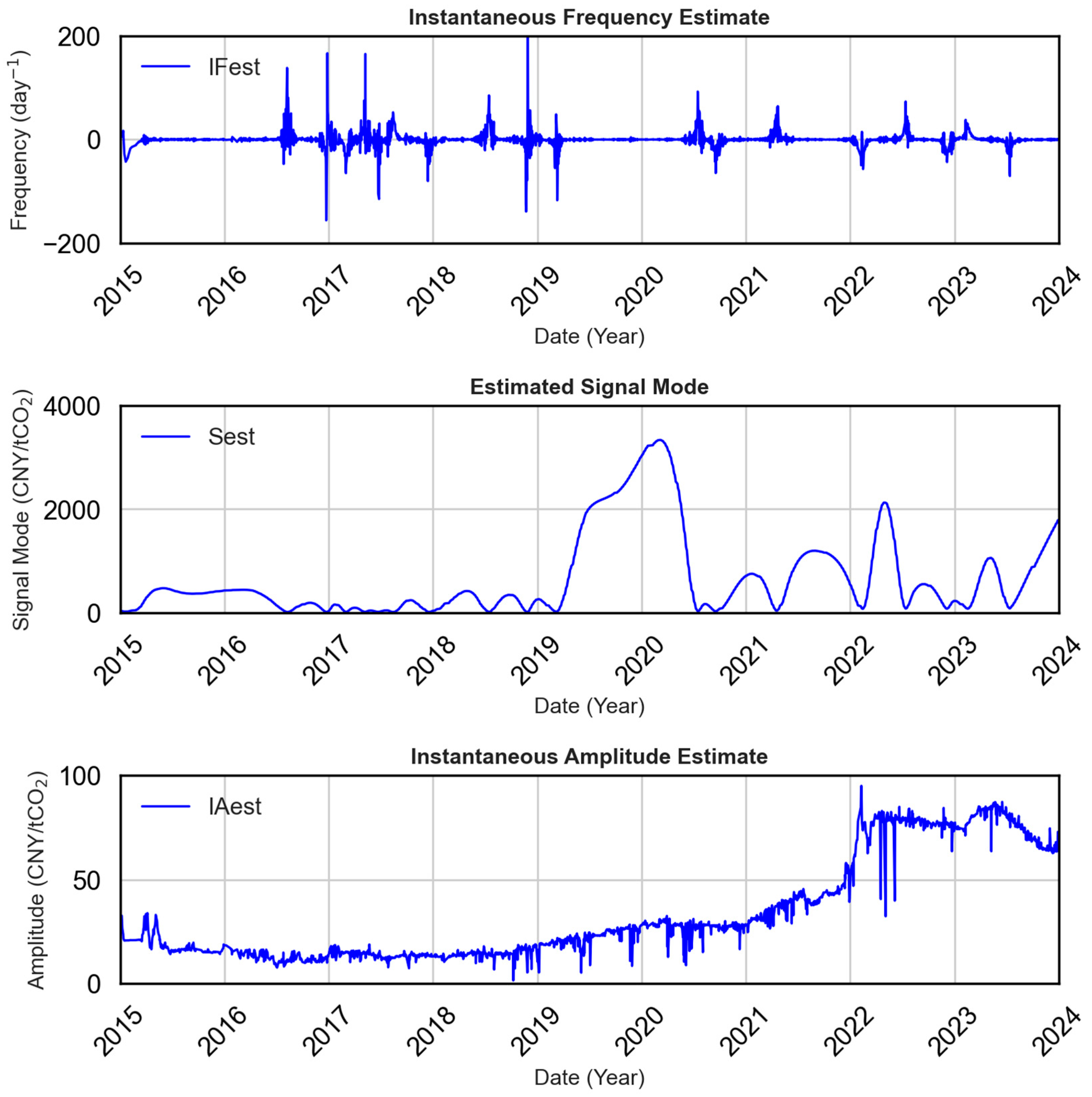 - Horizontal Federation Aggregation Carbon Price Data: This layer accepts raw carbon prices and influencing factor time series. It utilizes time–frequency decomposition techniques for denoising and trend extraction. The goal is to perform quantitative analysis and eliminate the noise component of carbon price fluctuations, enabling the model to focus on stable trends and critical dynamics. Unified data descriptors are established during the feature engineering phase to ensure consistency across regional feature spaces.