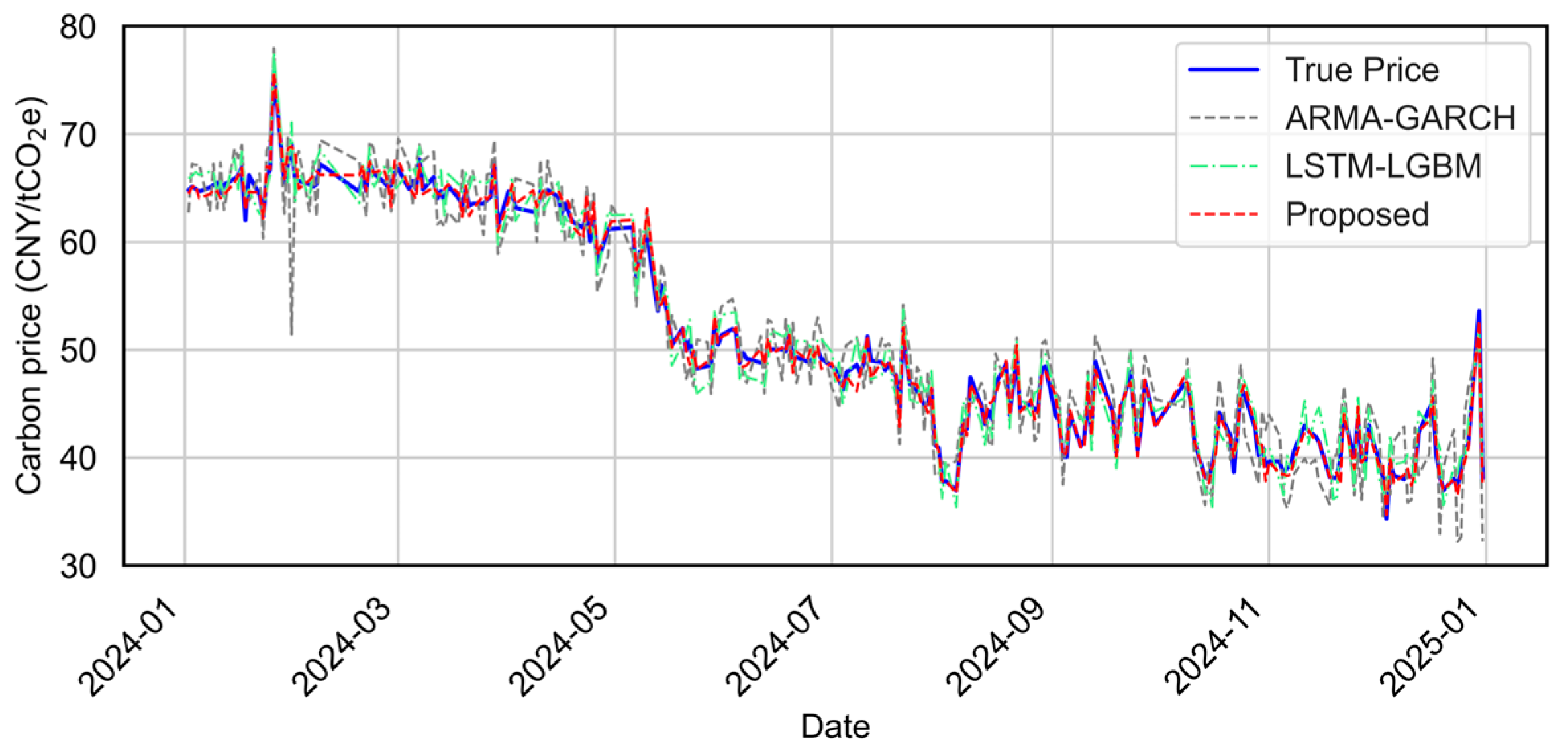 - Li, Y.; Yang, N.; Bi, G.; Chen, S.; Luo, Z.; Shen, X. Carbon price forecasting using a hybrid deep learning model: TKMixer-BiGRU-SA. Symmetry 2025, 17, 962. [Google Scholar] [CrossRef]