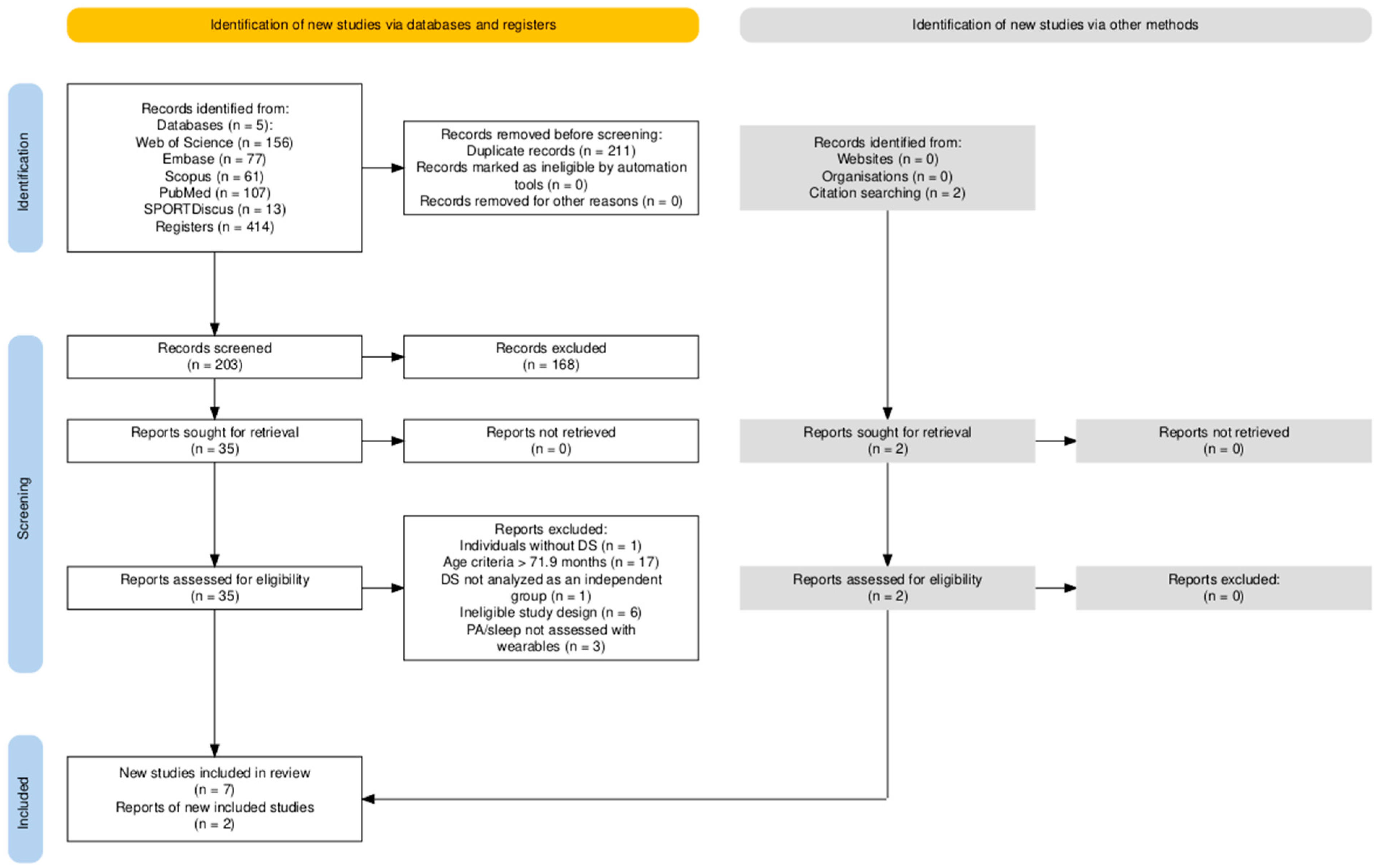 Chicago/Turabian StyleBorges, Gilson, Vanessa Moreira, and Fabio Bertapelli. 2025. "Wearable-Sensor-Based Physical Activity and Sleep in Children with Down Syndrome Aged 0–5 Years: A Systematic Review" Sensors 25, no. 23: 7278. https://doi.org/10.3390/s25237278