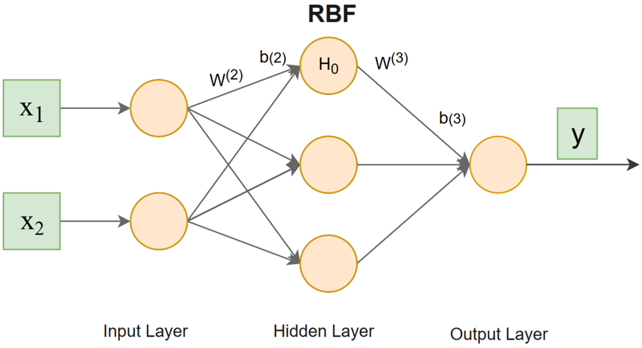 - The centers of the RBF basis functions are determined using the K-means clustering algorithm. Through multiple experimental validations and comprehensive evaluation based on prediction mean squared errors (MSEs) and training time consumption, the number of hidden layer nodes is optimized to three. The neural network preset training target is set to 0.01 with 300 maximum iterations. The training process continuously adjusts weights and expansion factors between the input and output layers, aiming to minimize prediction errors and establish the optimal mapping relationship.