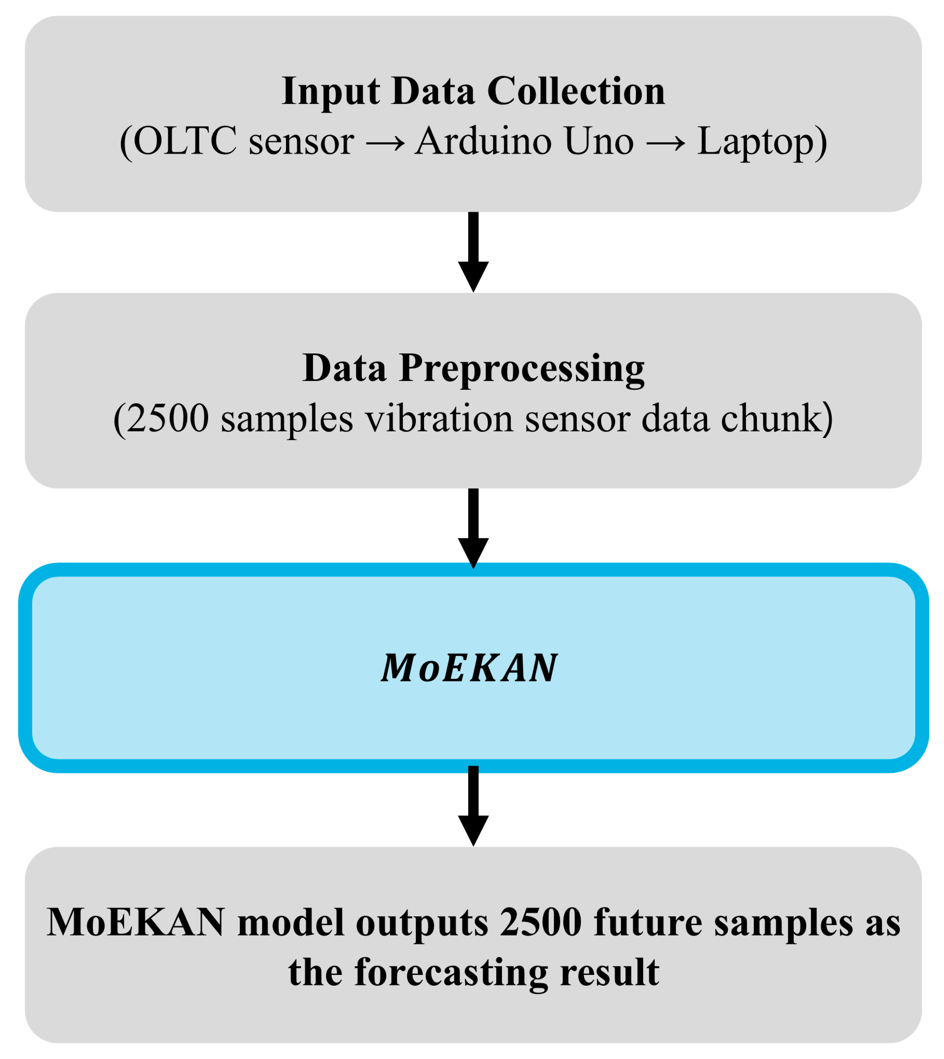 Figure 1. Overview of the proposed MoEKAN-based OLTC vibration forecasting system.