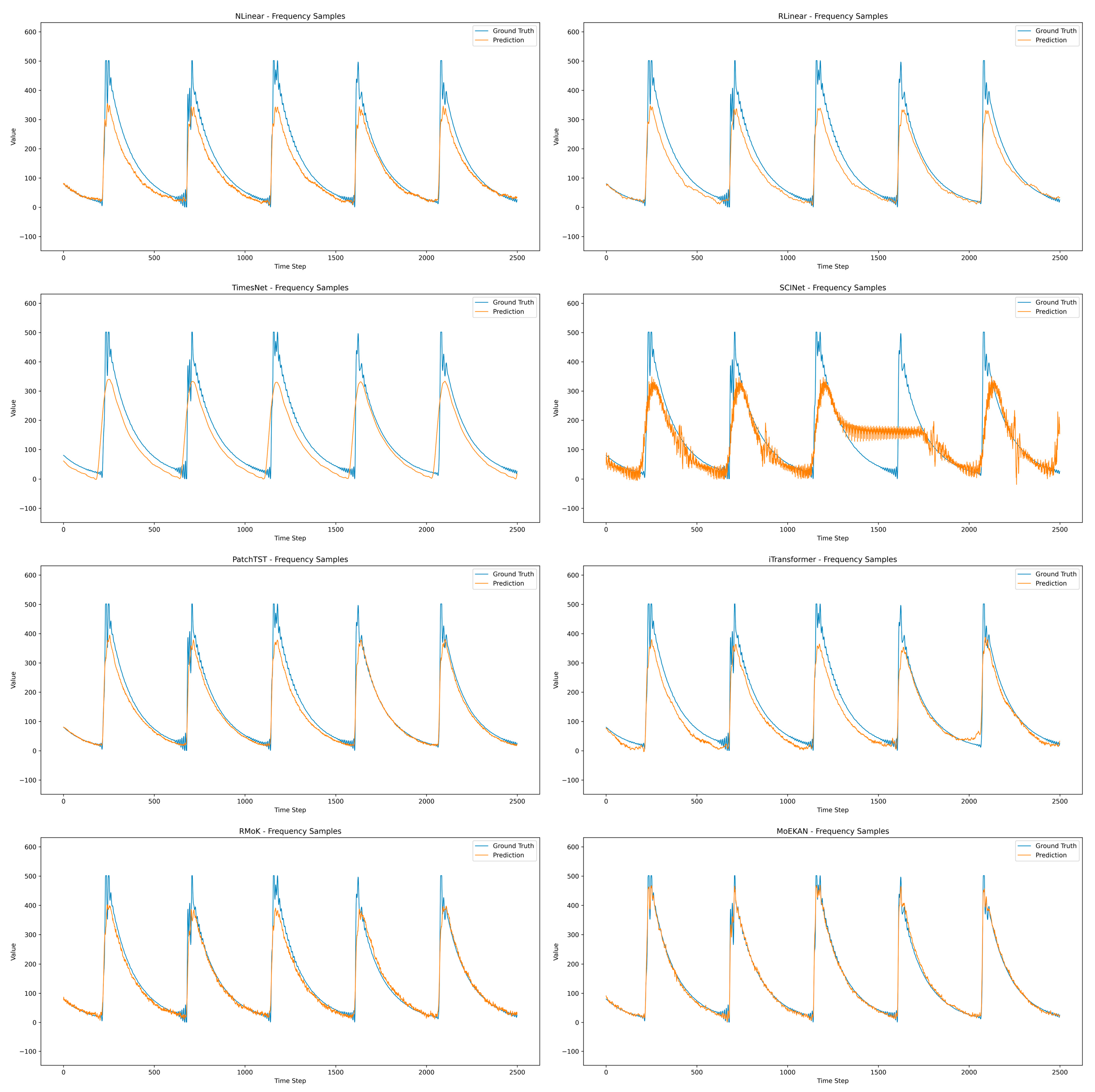 Figure 6. Comparison of separate forecasting results between existing networks and MoEKAN.