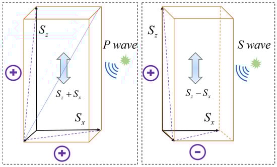 Primary (P) waves are compressional elastic waves whose propagation can be precisely described by elastodynamic theory. In this framework, the wavefield is defined by a scalar potential, digamma, and a vector potential, al . A purely P-wavefield is inherently irrotational, meaning that the vector potentials and responsible for shear or rotational motion vanish. Consequently, the derivation of particle motion and medium deformation in Equation (10) can be carried out using only the scalar potential.