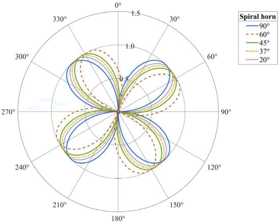 The helical winding angle θ is defined as the angle between the fiber and the cable axis. θ = 0° denotes a straight fiber aligned with the axis (minimal winding), while θ approaching 90° indicates a tightly wound fiber, which increases the effective length and enhances interaction with the incident wave. Based on the geometric conditions of the model, the relationship between the cable pitch length and the actual fiber length can be expressed as follows: