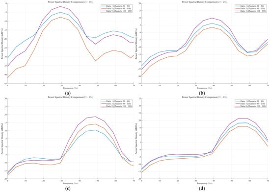 - Multidimensional Visualization: We generated comparative charts, including overlaid PSD comparisons for the three ratios (0–70 Hz), subplot displays, detailed analysis of the four source frequencies, and peak power calculations.