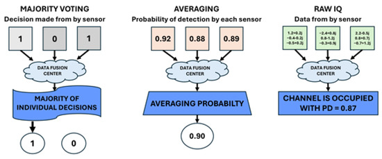 The effectiveness of cooperative detection depends not only on the implemented sensing method but also, to a large extent, on the data fusion algorithm (see Figure 2), which can be broadly divided into hard and soft.