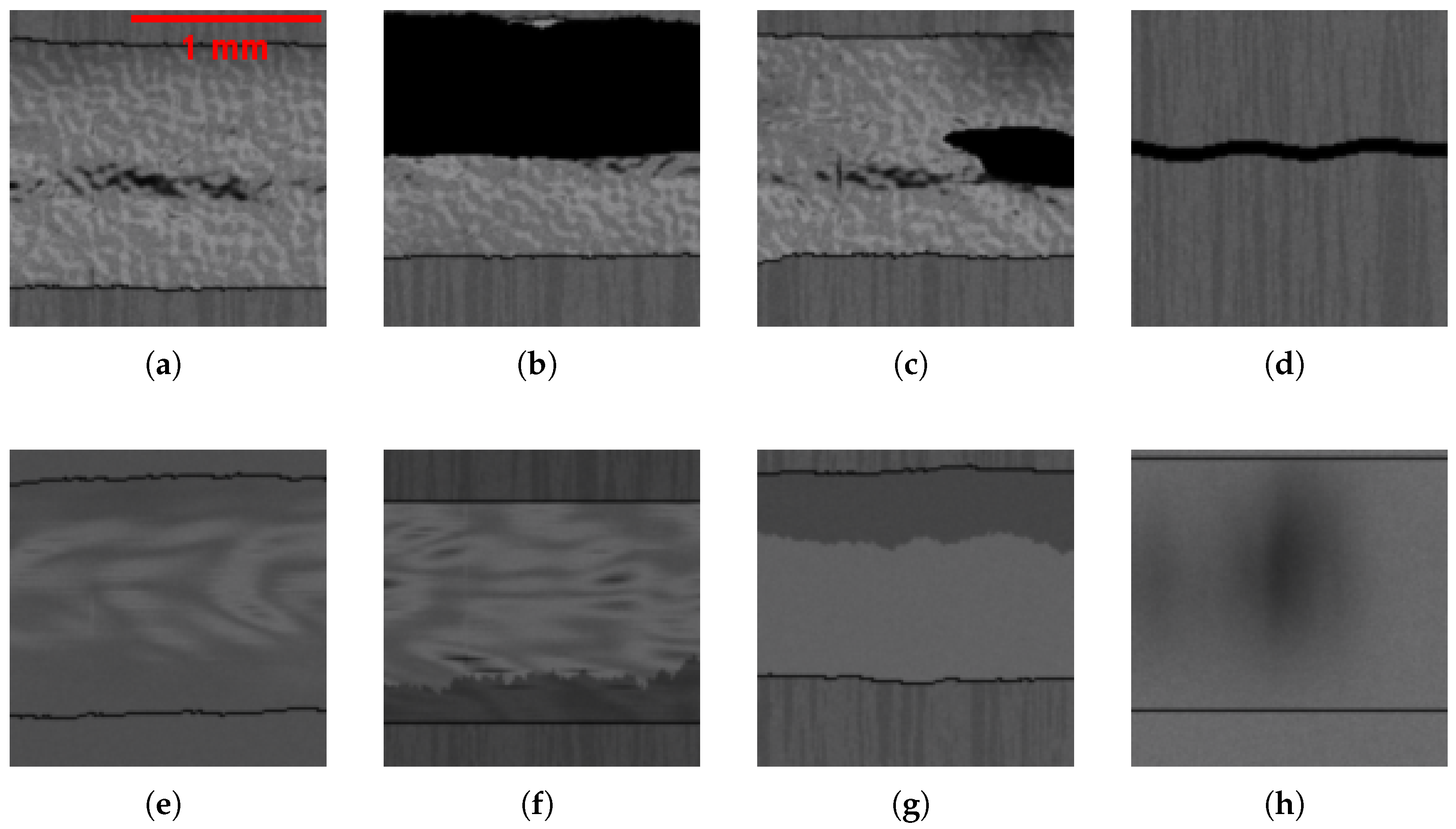 - Boikov, A.; Payor, V.; Savelev, R.; Kolesnikov, A. Synthetic data generation for steel defect detection and classification using deep learning. Symmetry 2021, 13, 1176. [Google Scholar] [CrossRef]