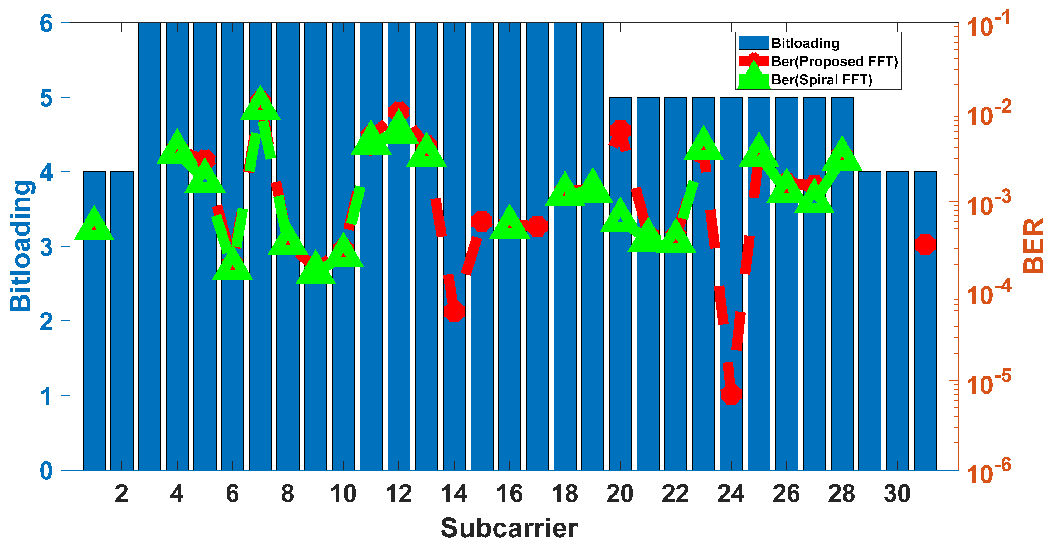 5.1.2. Comparative BER Performance of Spiral FFT and Proposed FFT