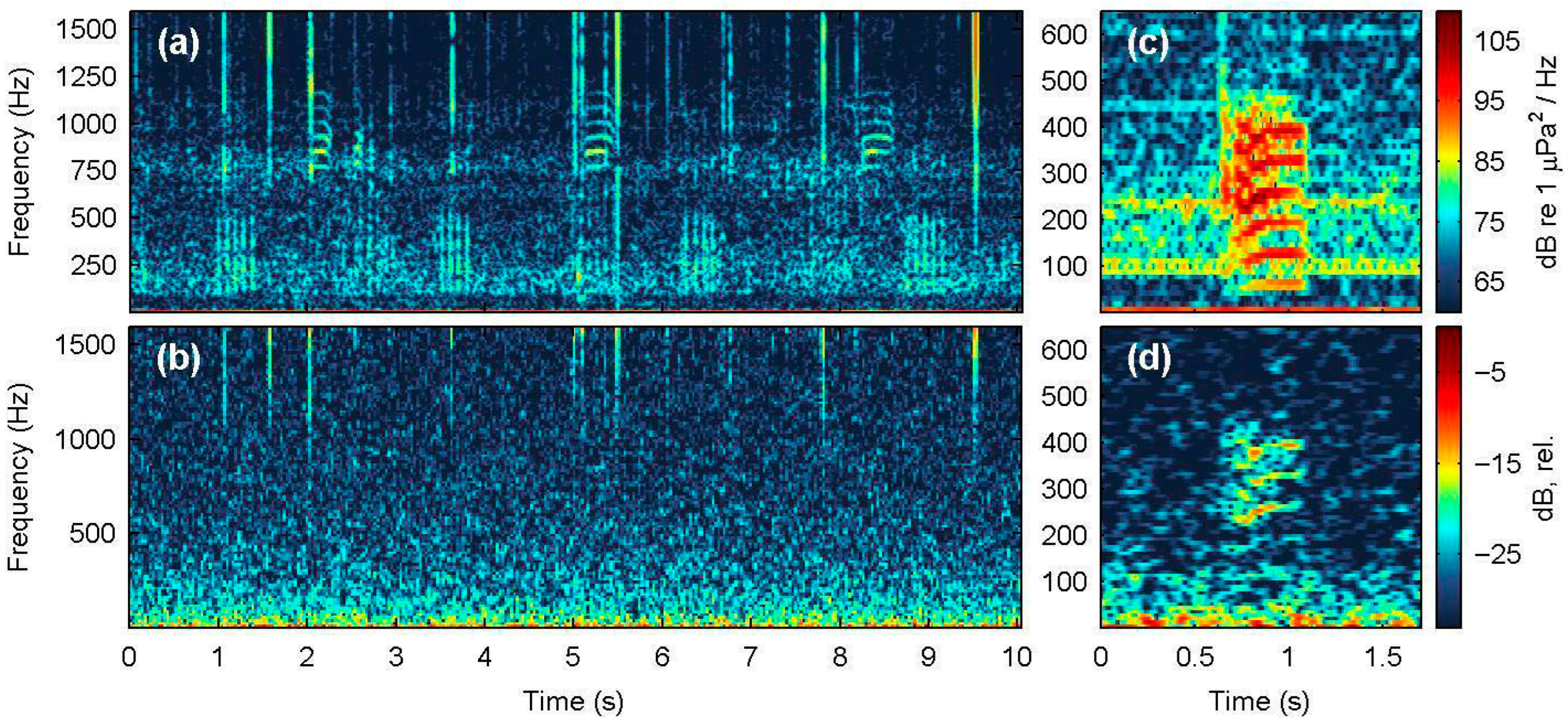 - Van Parijs, S.M.; Clark, C.W.; Sousa-Lima, R.S.; Parks, S.E.; Rankin, S.; Risch, D.; Van Opzeeland, I.C. Management and research applications of real-time and archival passive acoustic sensors over varying temporal and spatial scales. Mar. Ecol. Prog. Ser. 2009, 395, 21–36. [Google Scholar] [CrossRef]