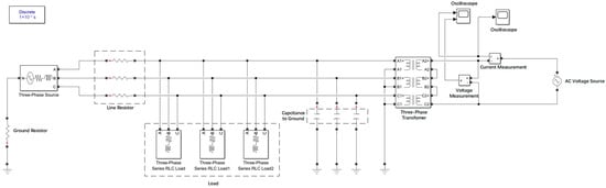 The following is the simulation verification of online measurement using the neutral point signal injection method, and the following power grid model was established (Figure 12):