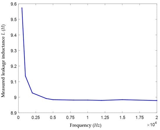 The experiment was carried out according to the experimental scheme in Section 5.1. The feedback current was measured when high-frequency signals were input, and the leakage inductance value L of the transformer was calculated using the formula as follows (Table 6):