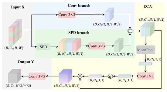 To preserve spatial details and avoid the information loss caused by traditional downsampling methods, the spatial-preserving branch introduces a pixel rearrangement for detail operation. This operation rearranges local regions from the input feature map into the channel dimension, effectively increasing the channel depth while maintaining spatial resolution. Subsequently, a convolutional layer is applied to compress the channels, resulting in a high-resolution feature map that retains detailed spatial information.