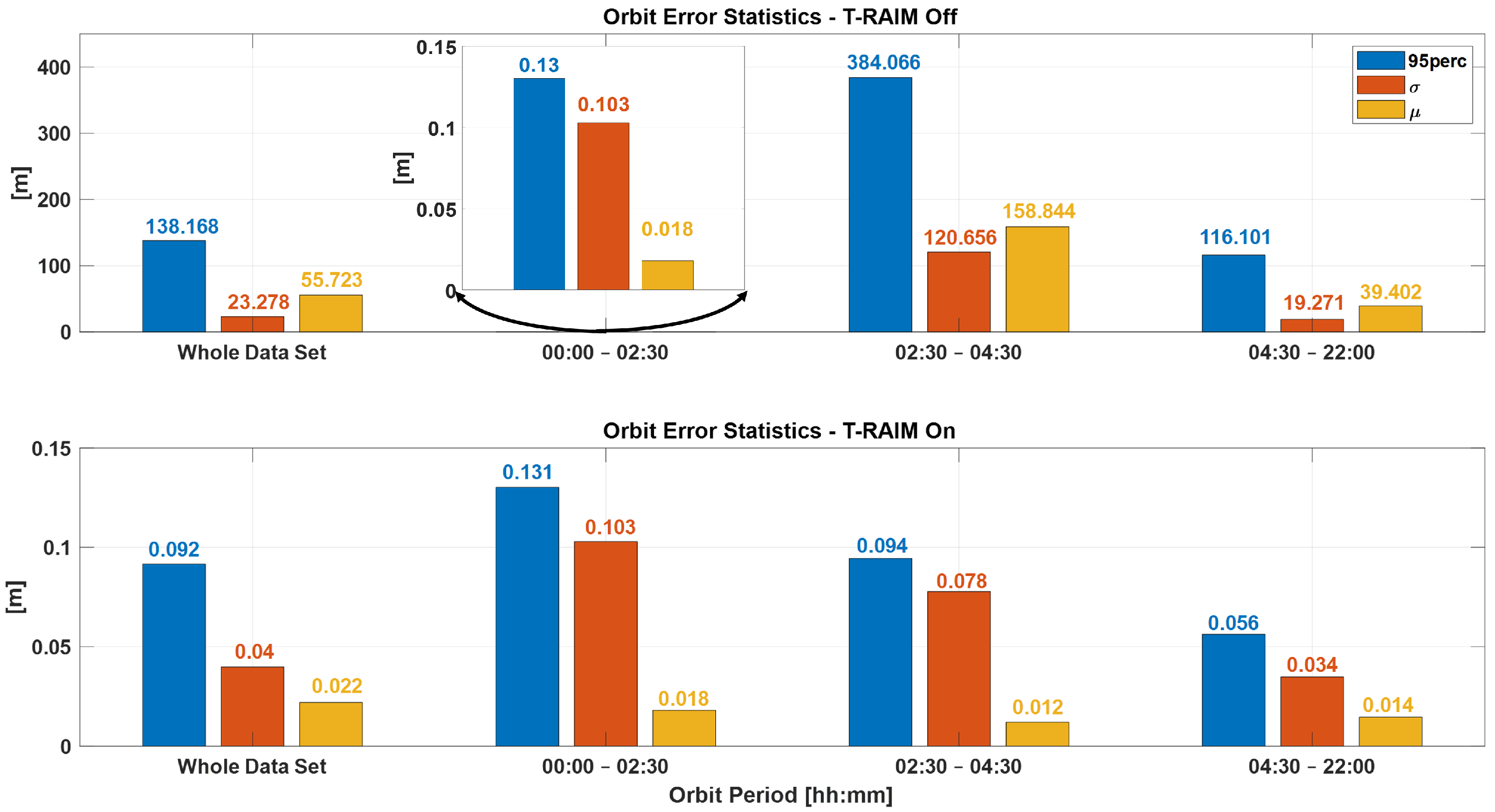 The comparison between performance with and without T-RAIM is summarized in