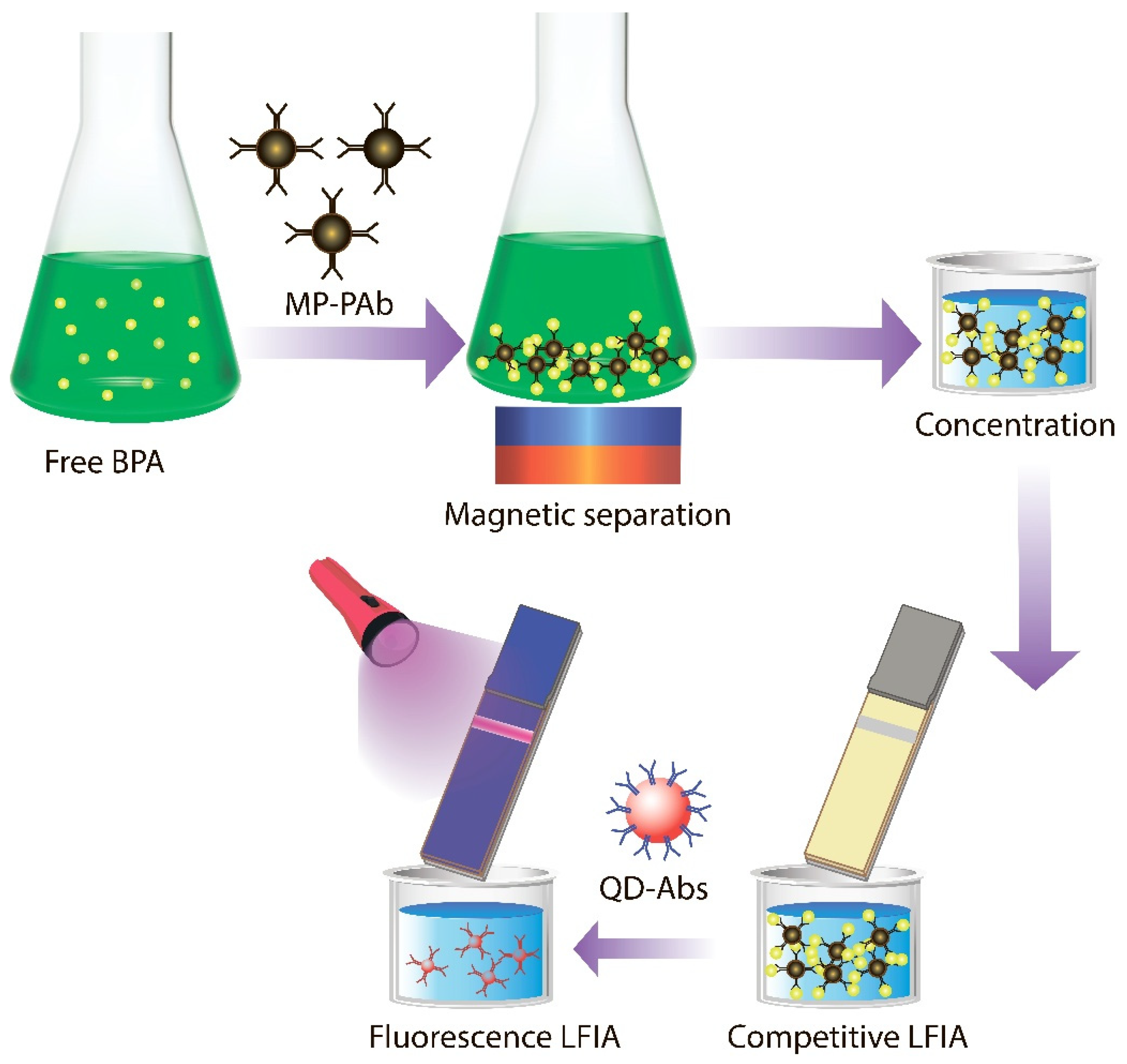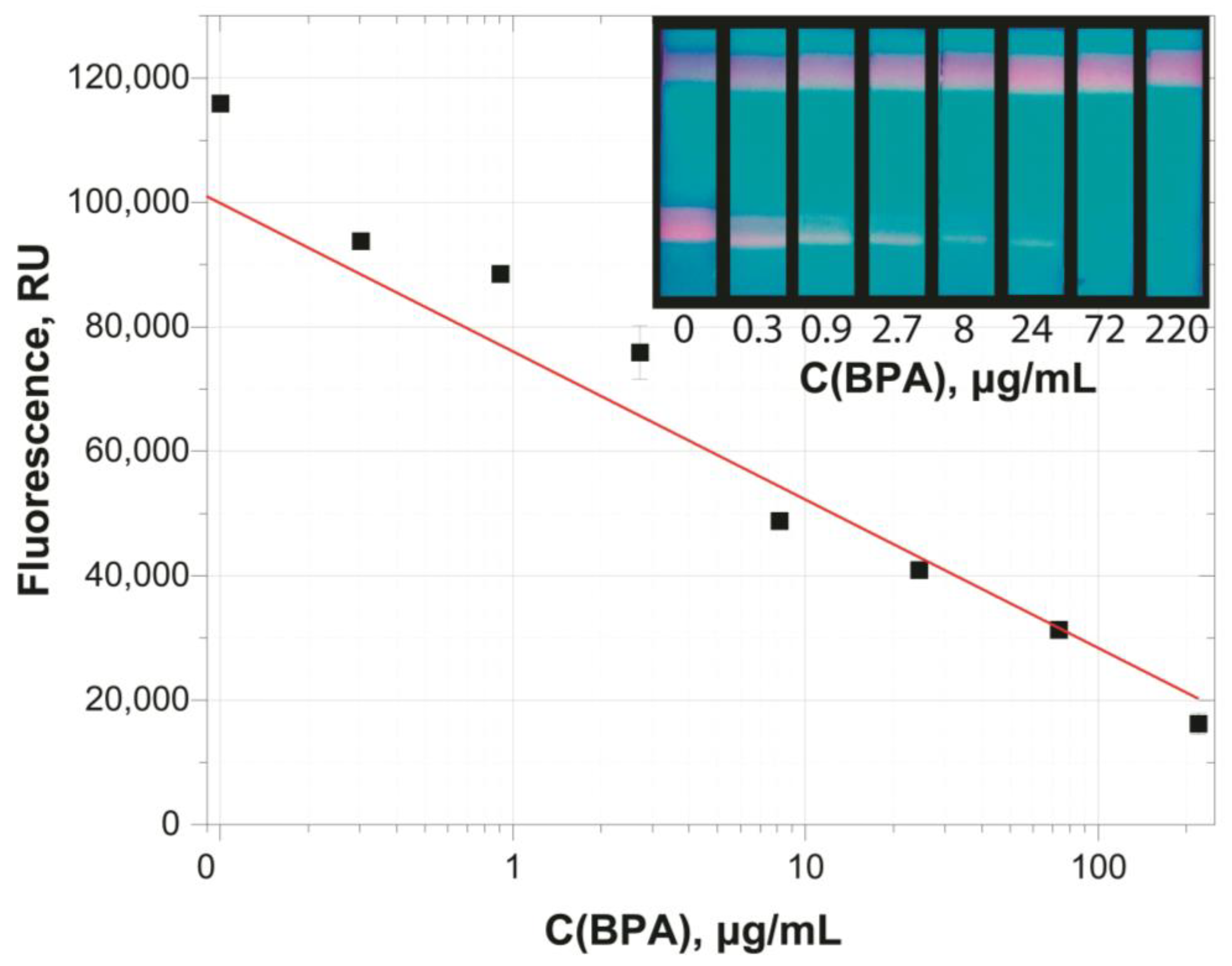 - Sheng, W.; Duan, W.; Shi, Y.; Chang, Q.; Zhang, Y.; Lu, Y.; Wang, S. Sensitive detection of bisphenol A in drinking water and river water using an upconversion nanoparticles-based fluorescence immunoassay in combination with magnetic separation. Anal. Methods 2018, 10, 5313–5320. [Google Scholar] [CrossRef]