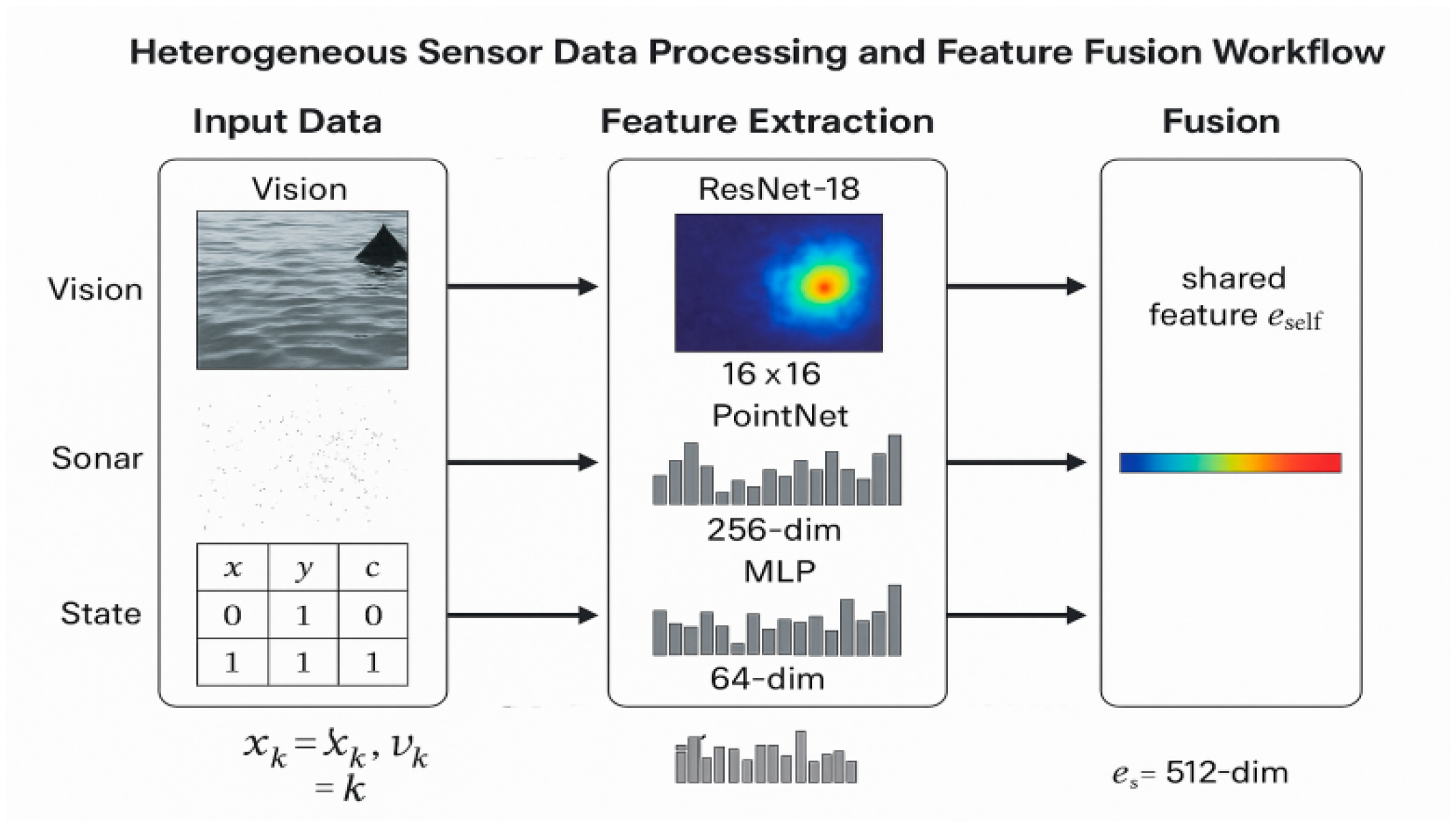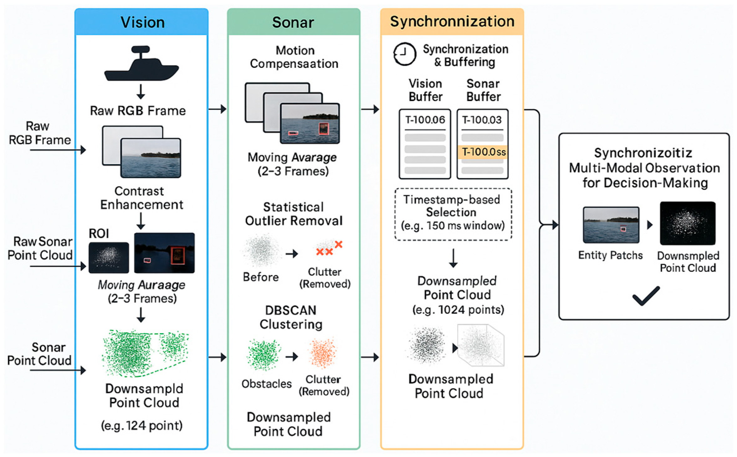 - Sonar Array: A forward-looking sonar system that generates point cloud data of underwater objects. This data is processed by a PointNet architecture.