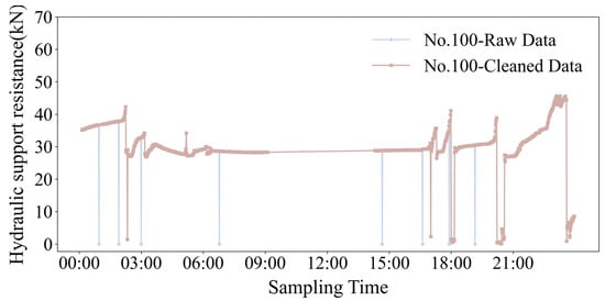 The hydraulic support pressure data used for model debugging was sourced from the #25216 working face in Yulin City, Shaanxi Province, China. The face is equipped with 199 sets of ZY18000/29.5/63D electro-hydraulic control shielded hydraulic supports manufactured by Linzhou Heavy Machinery Group Co., Ltd (Linzhou City, Henan Province, China). The leg pressure is transmitted via the electro-hydraulic control system to the rock burst monitoring system. The leg pressure range is 0–60 MPa, and data is collected every 1 min, which satisfies the GRU-AM model’s requirements for data volume and sampling interval.