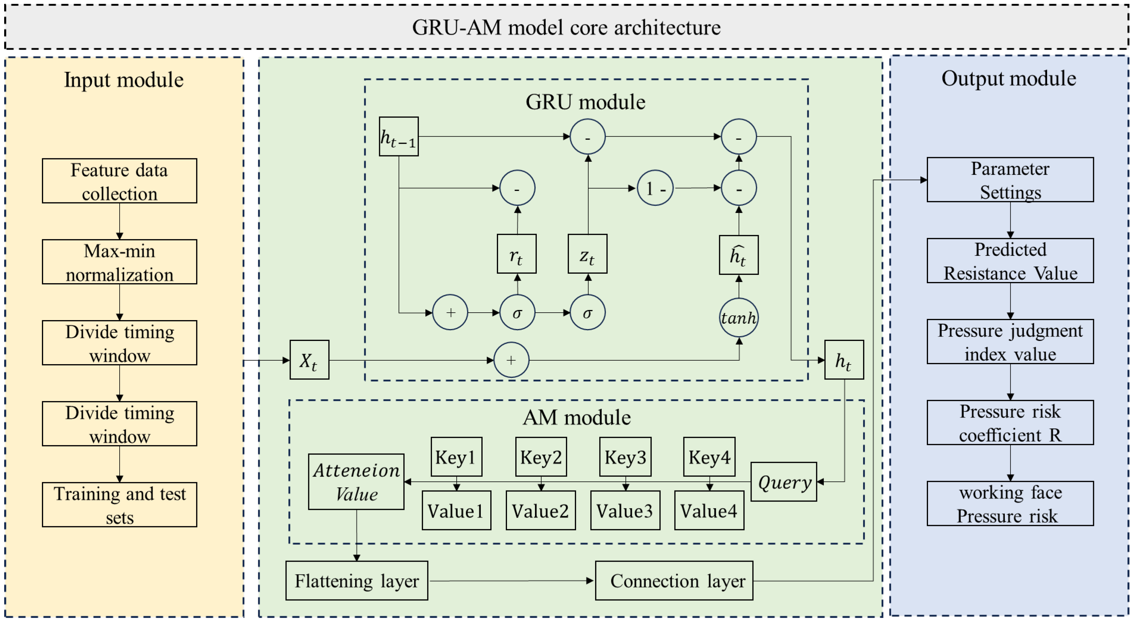 The proposed GRU-AM model combines the advantages of the GRU’s lightweight temporal modeling with the key feature-enhancing capabilities of the AM. This fusion enables the model to adaptively assign higher weight to abnormally sensitive information.