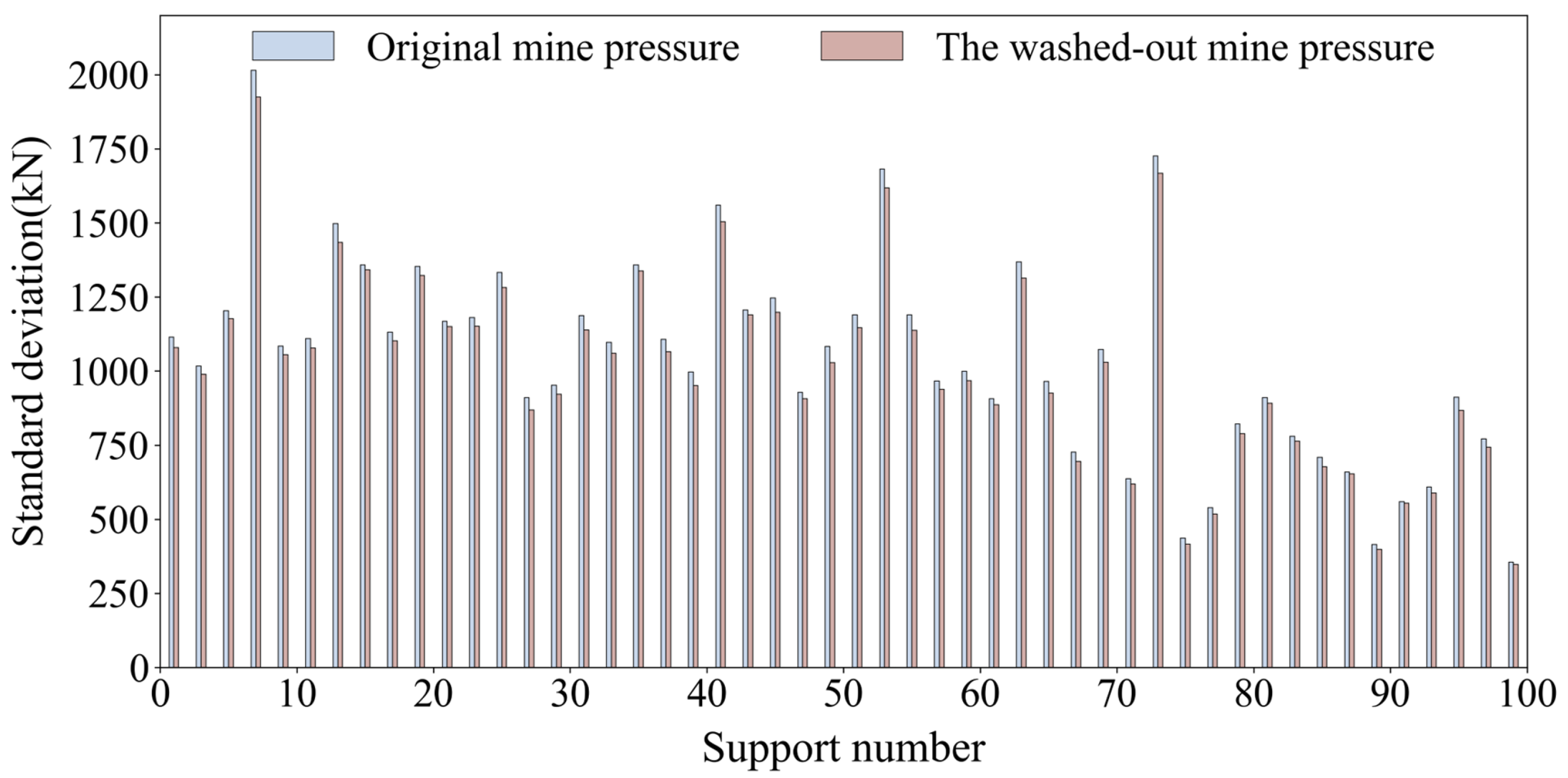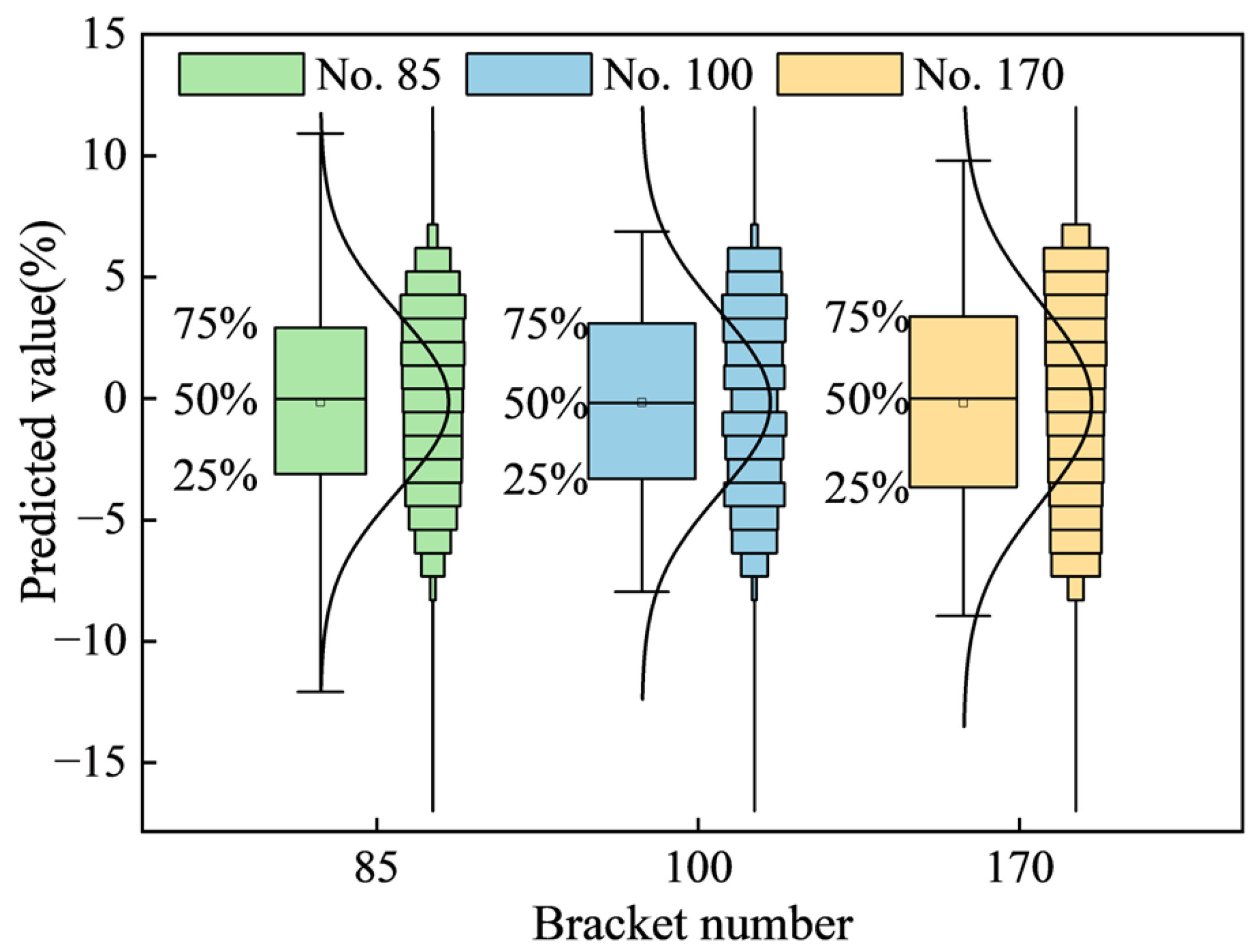 Specifically, the mean predicted values for supports No. 85, No. 100, and No. 170 are 99.85%, 99.844%, and 99.827% of their respective actual values. Since the mean predicted values are all greater than the actual support pressure values, this further confirms the high Accuracy of the support pressure prediction model.