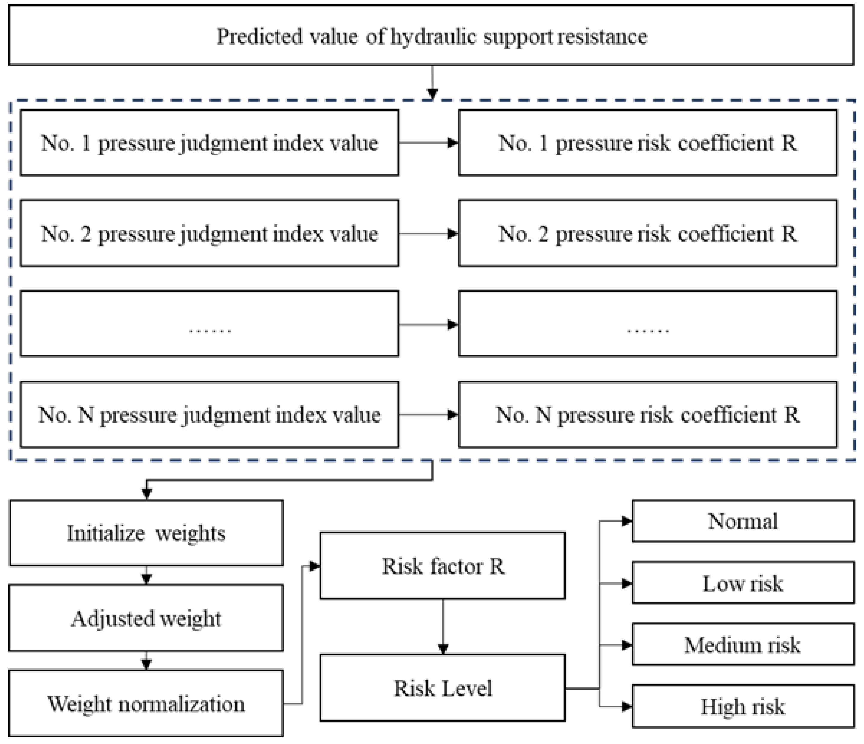 Table 13, which details the actual strata pressure anomaly identification results for the working face at the mine in Baoji City, Shaanxi Province, the model demonstrated the ability to effectively identify low-, medium-, and high-risk levels across multiple working cycles from 2 July to 11 July 2025. This outcome highlights the model’s robust capability to identify strata pressure anomalies in this mine working face.