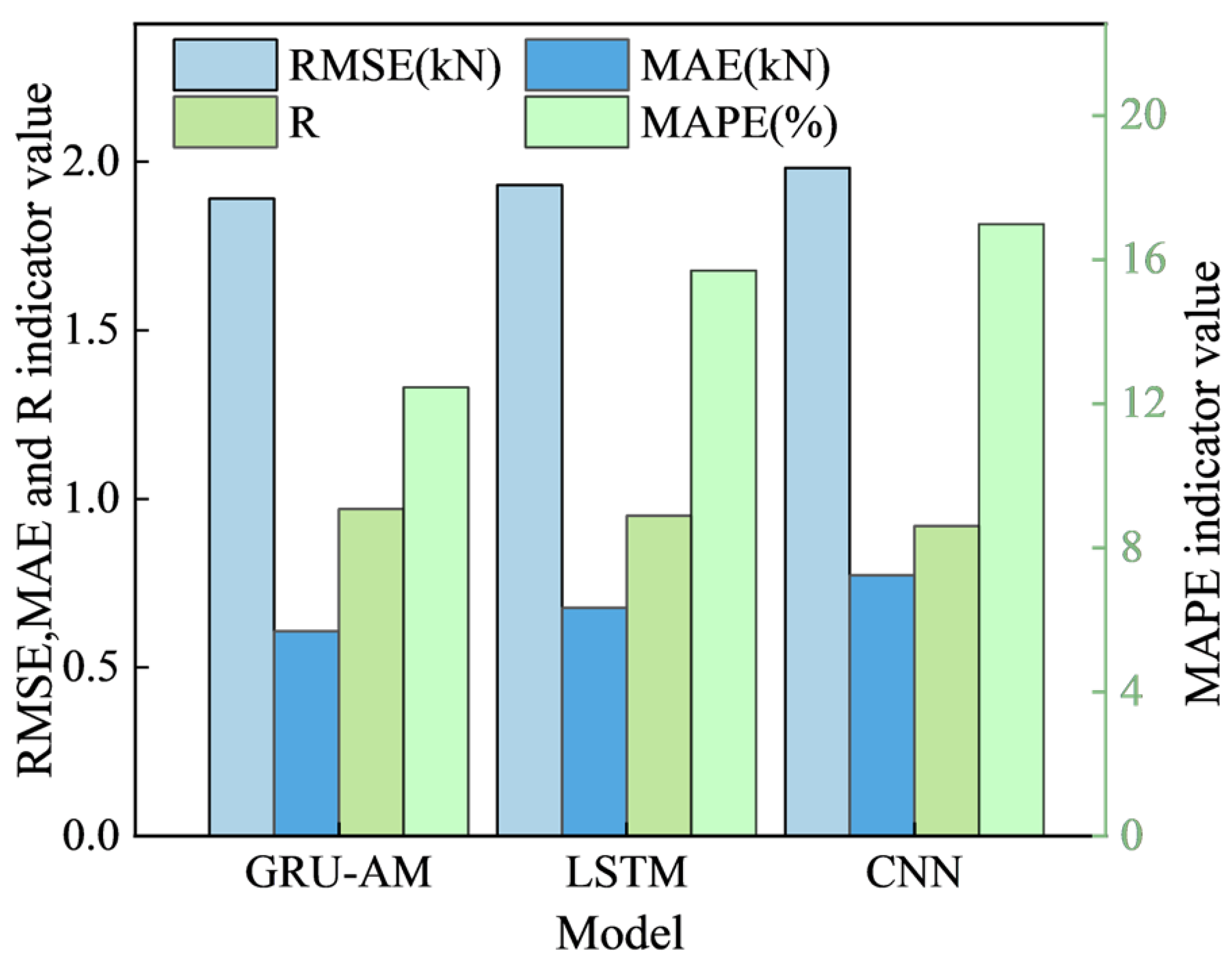 Table 5 shows the prediction results of three models (GRU-AM, LSTM, and CNN) at step sizes of 5, 10, and 15 min.